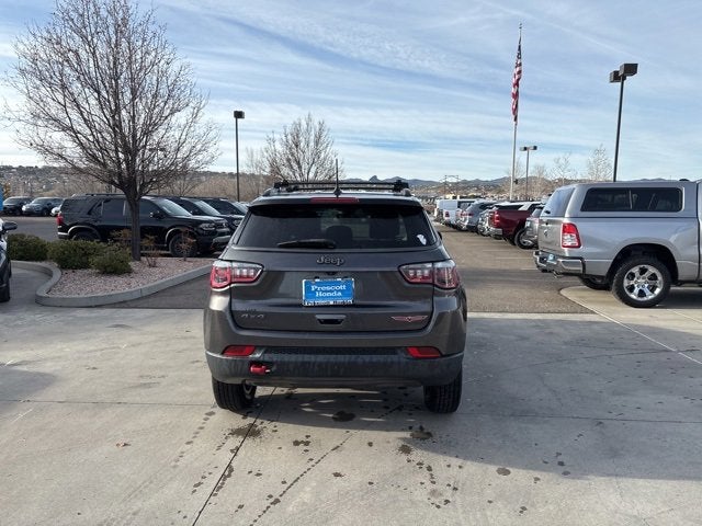 Remember, we service every car we sell! Better Cars don't have to cost more -- just bring in this printed page to receive our best price on this vehicle! Our inventory changes daily -- please call to confirm availability and pricing. All vehicles are equipped with our Paint Protection Package for $695. Dealer not responsible for typographical errors. Call for details 928-432-7959. Recent Arrival! 22/30 City/Highway MPG. Located in Prescott AZ, and also serving Flagstaff, Cottonwood, Sedona, Camp Verde, Scottsdale, and the greater Phoenix area. Also, we're part of the Valley Honda Dealers. Thank you again for your interest in this Jeep Compass. It is equipped with these features: Cold Weather Group (Heated Front Seats, Heated Steering Wheel, and Windshield Wiper De-Icer), Popular Equipment Group (4-Way Power Lumbar Adjust, Auto-Dimming Rear-View Mirror, Power 8-Way Driver/Manual 6-Way Passenger Seats, and Remote Start System), Quick Order Package 27E, 4-Wheel Disc Brakes, 4.334 Axle Ratio, 6 Speakers, ABS brakes, Air Conditioning, Alloy wheels, AM/FM radio: SiriusXM, Anti-whiplash front head restraints, Apple CarPlay/Android Auto, Automatic temperature control, Brake assist, Bumpers: body-color, Compass, Delay-off headlights, Driver door bin, Driver vanity mirror, Dual front impact airbags, Dual front side impact airbags, Electronic Stability Control, Four wheel independent suspension, Front anti-roll bar, Front Bucket Seats, Front Center Armrest w/Storage, Front dual zone A/C, Front fog lights, Front reading lights, Fully automatic headlights, Heated door mirrors, Illuminated entry, Knee airbag, Leather Shift Knob, Low tire pressure warning, Manufacturer's Statement of Origin, Occupant sensing airbag, Outside temperature display, Overhead airbag, Overhead console, Panic alarm, ParkView Rear Back-Up Camera, Passenger door bin, Passenger vanity mirror, Power door mirrors, Power steering, Power windows, Premium Cloth/Leather Trim Bucket Seats, Radio: Uconnect 4 w/8.4" Display, Rear anti-roll bar, Rear seat center armrest, Rear window defroster, Rear window wiper, Remote keyless entry, Roof rack: rails only, Speed control, Split folding rear seat, Spoiler, Steering wheel mounted audio controls, Tachometer, Telescoping steering wheel, Tilt steering wheel, Traction control, Trip computer, Turn signal indicator mirrors, Variably intermittent wipers, and Wheels: 17" x 6.5" Polished/Black Pockets Aluminum.