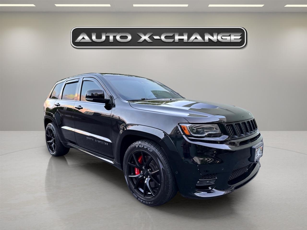 Buckle up for an exhilarating ride with this bold 2018 Black Jeep Grand Cherokee! Born for adventure with its 6.4L V8 SRT HEMI engine and high-performance suspension, this SUV is ready to take on any terrain. Towing trailers is a breeze with the heavy-duty engine cooling and towing equipment. The sleek exterior is accentuated by 20" satin carbon wheels, body-colored bumpers, and LED headlights that illuminate the way on night drives. Step inside the luxurious cabin to find heated and ventilated front seats, a panoramic sunroof, and a leather-wrapped steering wheel. Stay connected with the Uconnect system, voice activation, and SiriusXM Traffic for real-time updates. Safety features like blind-spot monitoring, forward collision warning, and a ParkView backup camera provide peace of mind on the road. Whether you're cruising down the highway or tackling off-road trails, this Jeep Grand Cherokee delivers a thrilling driving experience. Plus, rest assured with the included Carfax report, documenting the vehicle's history. Don't miss out on your chance to own this powerful and stylish SUV!