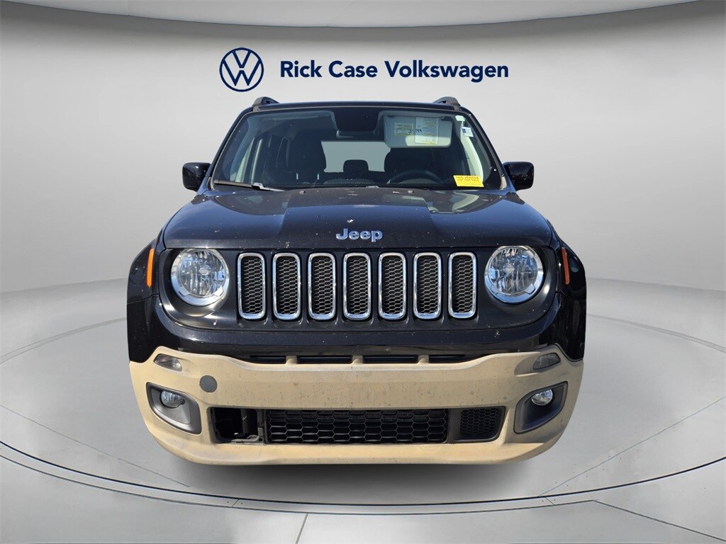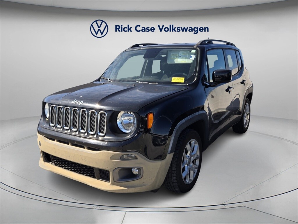 Recent Arrival! Earn Rick Case Rewards, Save $100s, Even $1,000s on future purchases, Free Car Washes & Discount Gas for Life. Black 2018 Jeep Renegade Latitude FWD 9-Speed 948TE Automatic 2.4L I4 MultiAir. This vehicle comes equipped with Quick Order Package 2EJ, 16" x 6.5" Aluminum Wheels, 17" x 7.0" Aluminum Wheels, 3.734 Final Drive Ratio, 4-Wheel Disc Brakes, 4.438 Final Drive Ratio, 6 Speakers, ABS brakes, Air Conditioning, Alloy wheels, AM/FM radio: SiriusXM, Anti-whiplash front head restraints, Apple CarPlay/Android Auto, Automatic temperature control, Brake assist, Compass, Delay-off headlights, Driver door bin, Driver vanity mirror, Dual front impact airbags, Dual front side impact airbags, Electronic Stability Control, Four wheel independent suspension, Front anti-roll bar, Front Bucket Seats, Front Center Armrest, Front dual zone A/C, Front fog lights, Front reading lights, Fully automatic headlights, Heated door mirrors, Illuminated entry, Knee airbag, Leather steering wheel, Low tire pressure warning, Normal Duty Suspension, Occupant sensing airbag, Outside temperature display, Overhead airbag, Overhead console, Panic alarm, ParkView Rear Back-Up Camera, Passenger door bin, Passenger vanity mirror, Power door mirrors, Power steering, Power windows, Premium Cloth Bucket Seats, Radio data system, Radio: Uconnect 4 w/7" Display, Rear anti-roll bar, Rear window defroster, Rear window wiper, Remote keyless entry, Roof rack: rails only, Spoiler, Steering wheel mounted audio controls, Tachometer, Telescoping steering wheel, Tilt steering wheel, Traction control, Trip computer, Variably intermittent wipers, and Voltmeter.