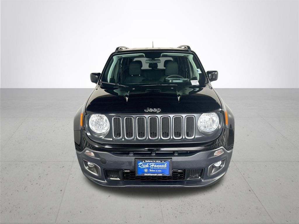 Performed maintenance: including oil & filter change, cabin & engine air filter, wiper blades, professional detail, and 100+ point safety & mechanical inspection. Renegade Latitude, 4D Sport Utility, 2.4L I4, 9-Speed 948TE Automatic, 4WD, Black, Black w/Cloth Low-Back Bucket Seats, 6 Speakers, ABS brakes, Alloy wheels, AM/FM radio: SiriusXM, Apple CarPlay/Android Auto, Brake assist, Compass, Delay-off headlights, Electronic Stability Control, Front dual zone A/C, Fully automatic headlights, Heated door mirrors, Illuminated entry, Leather steering wheel, Low tire pressure warning, ParkView Rear Back-Up Camera, Power door mirrors, Premium Cloth Bucket Seats, Radio: Uconnect 4 w/7" Display, Remote keyless entry, Spoiler, Traction control. This Dick Hannah used vehicle comes with limited warranty coverage of 100% labor and 100% parts for 12 months or 12,000 miles, whichever comes first. See dealership for full warranty details. See dealership representative for complete program details. Call and schedule your test drive experience today. You won't be disappointed. Open 7 days a week.