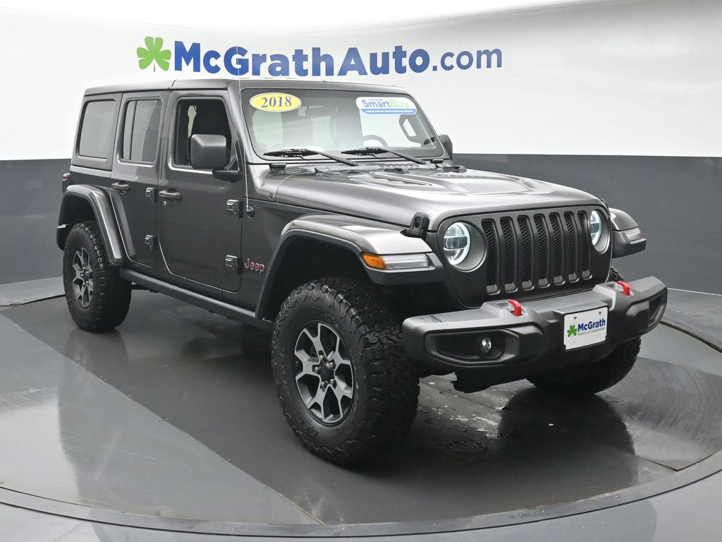 Odometer is 14828 miles below market average! Certification Program Details: McGrath SmartBuy Benefits: * 3 Month / 3,000 Mile Limited Powertrain Warranty * Free Vehicle History Report * 106 Point Full Vehicle Condition Inspection 2018 Jeep Wrangler Unlimited Rubicon 3.6L V6 24V VVT 4WD We're in the customer service business first, the car business second. - H.B. McGrath. Our goal is to offer our customers great vehicles at unmatched prices, but the car business isn't just about the product, it's about the people. Welcome to McGrath, your destination for award-winning automotive excellence! We were voted CBJ's 2024 #1 Coolest Place to Work and winner of 2024 Best of the Best Auto Dealer, Auto Service, and Fleet Dealer. We’re proud to deliver unmatched quality and service. With over 11,000 5-star Google reviews, our customers’ trust and satisfaction drive everything we do. Whether you’re buying, servicing, or building your fleet, experience why McGrath is the top choice for all your automotive needs! If we aren't making our customers happy, we aren't in business. It's as simple as that, and we intend to deliver on the promise: Get More with McGrath. Prices may change at any time and are subject to availability and prior sale. Taxes, title, license fees, and a $180 documentation fee are not included. Pricing reflects all applicable rebates and incentives assigned to the dealer. Example payments are estimates; actual terms vary based on credit approval. APR and payment estimates apply to qualified buyers, not all buyers qualify for advertised rates. Factory cash incentives may not be combined with promotional APR. Fuel economy ratings and driving range figures are based on EPA estimates for new vehicles, and actual mileage and range may vary. Some in-stock vehicles may include a $1,295 Clear Guard Protection package By submitting your phone number online, you consent to occasional SMS or voice calls about our products and promotions; standard messaging rates may apply. Consult dealer for offer eligibility and other details. Factory MSRP is not the final advertised/asking price of the vehicle. Fuel economy figures are official EPA estimates and clearly labeled as such.