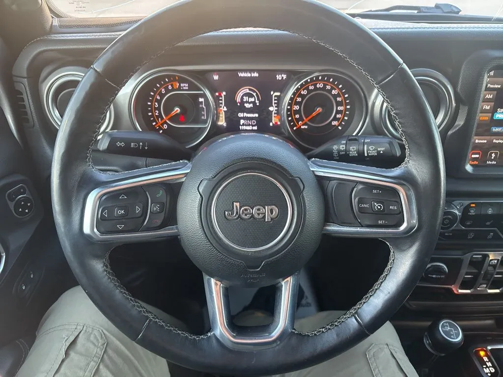 This used 2018 Jeep Wrangler Unlimited Sahara exemplifies rugged versatility and modern technology wrapped in a sleek Billet Silver Metallic Clearcoat exterior. With a proven 119,445 miles on the clock, this SUV is built to handle adventure while offering a comfortable black interior. Powered by a 3.6-liter V6 engine producing 285 horsepower and 260 lb-ft of torque, it combines robust performance with fuel efficiency rated at 18 mpg city and 23 mpg highway. The 8-speed automatic transmission and 4WD drivetrain ensure confident handling on diverse terrains, making it an ideal choice for outdoor enthusiasts and daily drivers alike. Inside, drivers benefit from an array of premium features, including Apple CarPlay, a backup camera, Bluetooth connectivity, fog lights, heated seats, keyless entry, integrated navigation, a premium audio system, push start, and satellite radio readiness. This used Jeep Wrangler offers a compelling blend of capability, comfort, and cutting-edge technology designed to elevate your driving experience.