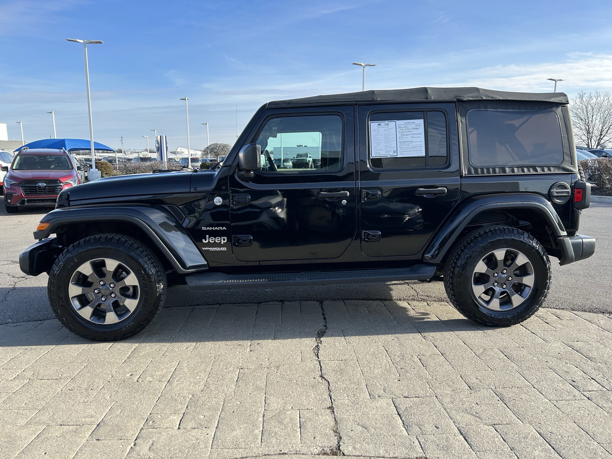 Black Clearcoat 2018 Jeep Wrangler Unlimited Sahara 4WD 8-Speed Automatic 2.0L I4 DOHC. All vehicles are subject to prior sale. Price does not include applicable tax, title, license, and a $398.00 documentation fee or other fees required by law, lending institutions, and/or lessors. Vehicles shown at different locations are not currently in our inventory (not in stock) but can be made available at our location within a reasonable time after your request. The payment information provided here is not a commitment by any organization to provide credit, leases or other programs.