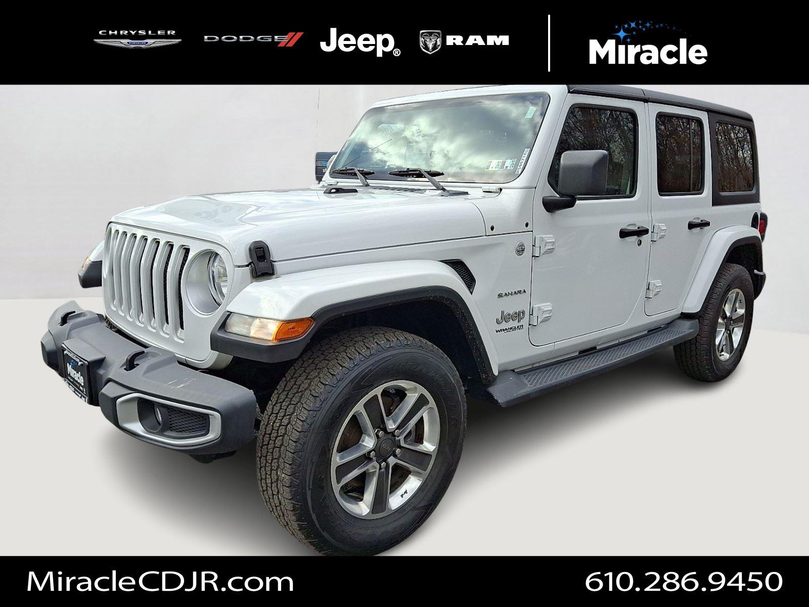 This 2018 Jeep Wrangler Unlimited Sahara, has a Bright White Clearcoat exterior and a Black interior color. 51,360 miles. Stock Number P599216. You can connect with us by calling 610-726-0750. No Accidents! One Owner!