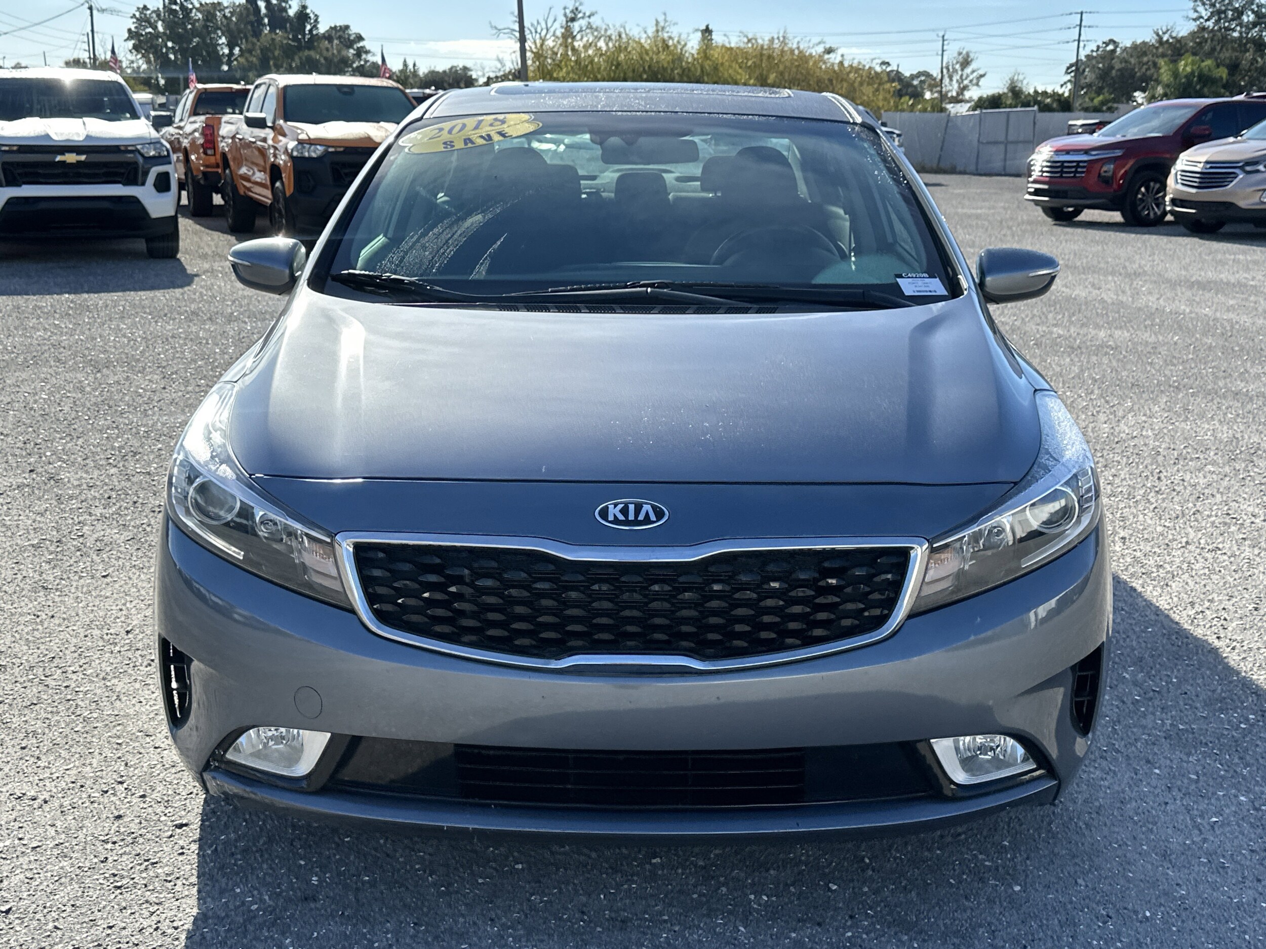 The price does not include tax, tag, license, an electronic filing fee of $449.00, a private tag agency fee of $199.00, and a predelivery service charge of $1199.00. EPA-estimate metric: these are contingent on ideal conditions within a lab. Real-world situations such as carrying passengers or cargo, using climate control, driving style, and ambient temperatures can affect actual metrics. CALL OR TEXT 941-451-5422 NOW FOR PROFESSIONAL SALES ASSISTANCE! 25/37 City/Highway MPG Air Conditioning, Alloy wheels, Apple CarPlay & Android Auto, Autonomous Emergency Braking (AEB), Blind Spot Detection, Brake assist, Driver & Front Passenger Auto Up/Down Windows, Dual Illuminated Visor Vanity Mirrors, Engine Immobilizer, Exterior Parking Camera Rear, Front Bucket Seats, Front Collision Warning System, Front Fog Lights, Front reading lights, Fully automatic headlights, Lane Change Assist, Lane Departure Warning System, Lane Keep Assist, Leather-Wrapped Shift Knob, LED Taillights, Outside temperature display, Pedestrian Detection, Perimeter Approach Lighting, Power Outside Mirrors w/LED Turn Signal Indicators, Power steering, Power Sunroof, Power windows, Push-Button Start System, Radio: UVO eServices Infotainment AM/FM/MP3 Audio, Rear Cross Traffic Alert (RCTA), S Technology Plus Package, Steering wheel mounted audio controls, Supervision Meter Cluster, Telescoping steering wheel, Tilt steering wheel, Trip computer. Phantom Gray 2018 Kia Forte S FWD 6-Speed Automatic 2.0L I4 DOHC Dual CVVT Recent Arrival! Odometer is 34747 miles below market average! 25/37 City/Highway MPG