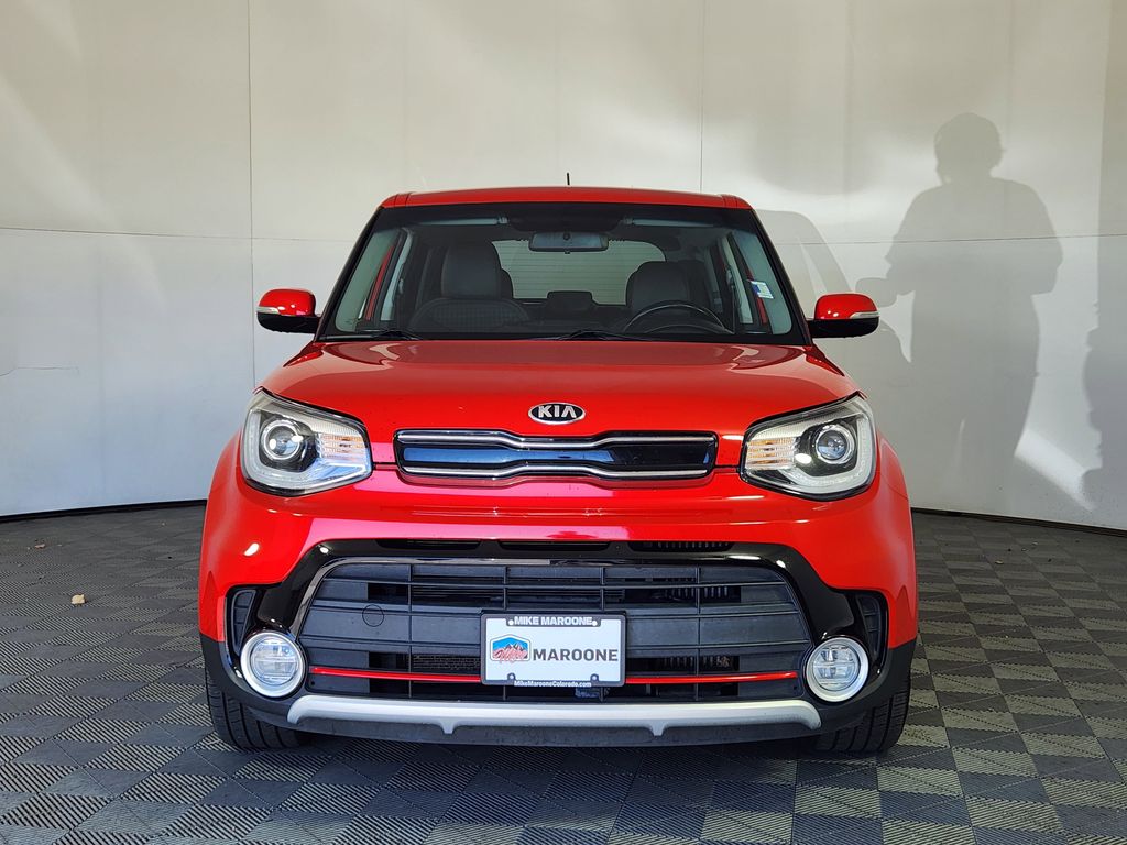 Recent Arrival! This vehicle is located at Mike Maroone Ford Longmont, 235 Alpine St, Longmont, CO 80501, please call (303) 776-2861 for more information. FREE DELIVERY ANYWHERE IN COLORADO, 2018 Kia Soul + (Plus), Inferno Red Exterior Black Interior 1.6L Turbo GDI 4-Cylinder Engine 7-Speed Dual-Clutch Automatic Transmission Front-Wheel Drive Technology Package 18-Inch Alloy Wheels Navigation System with 8-Inch Touchscreen Harman/Kardon Premium Audio System Apple CarPlay and Android Auto Bluetooth Connectivity SiriusXM Radio HD Radio Rearview Camera Blind Spot Detection Heated Front Seats Heated Rear Outboard Seats Heated Steering Wheel Power Drivers Seat with Lumbar Support Power Folding Heated Side Mirrors LED Positioning Lights LED Taillights Automatic Climate Control Push Button Start with Smart Key Cruise Control Leather-Wrapped Steering Wheel with Audio Controls 60/40 Split Folding Rear Seats Cargo Cover Cargo Net Fog Lights Privacy Glass Traction Control Electronic Stability Control Vehicle Stability Management Hill-Start Assist Control 4-Wheel Anti-Lock Brakes Tire Pressure Monitoring System LATCH Child Safety System 10-Year/100,000-Mile Powertrain Warranty (when new). Inferno Red 2018 Kia Soul Exclaim 4D Hatchback I4 7-Speed Automatic FWD 26/31 City/Highway MPG Awards: * 2018 KBB.com 10 Coolest New Cars Under $20,000 * 2018 KBB.com 10 Best Used Compact Cars Under $15,000
