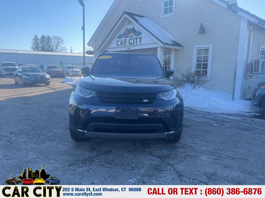 This 2018 Land Rover Discovery HSE V6 Supercharged is available for sale in East Windsor, Connecticut. The vehicle features a Byron Blue Metallic exterior with Tan/Ebony/Ebony interior and is equipped with a V6 Supercharged engine and four wheel drive. The mileage is 94,234 and the vehicle is in stock at Car City LLC.