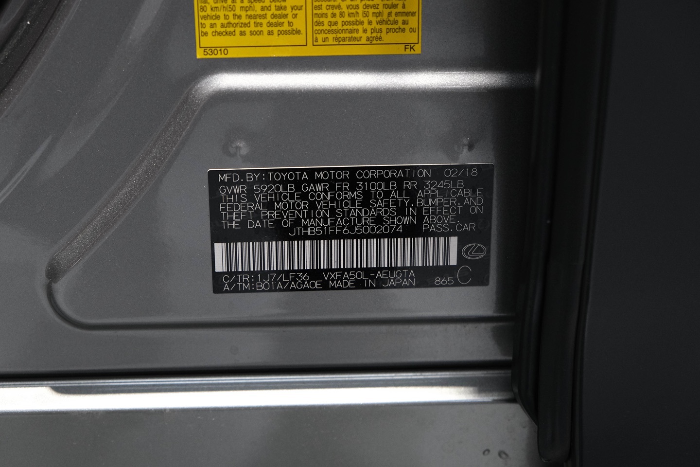 VIN: JTHB51FF6J5002074