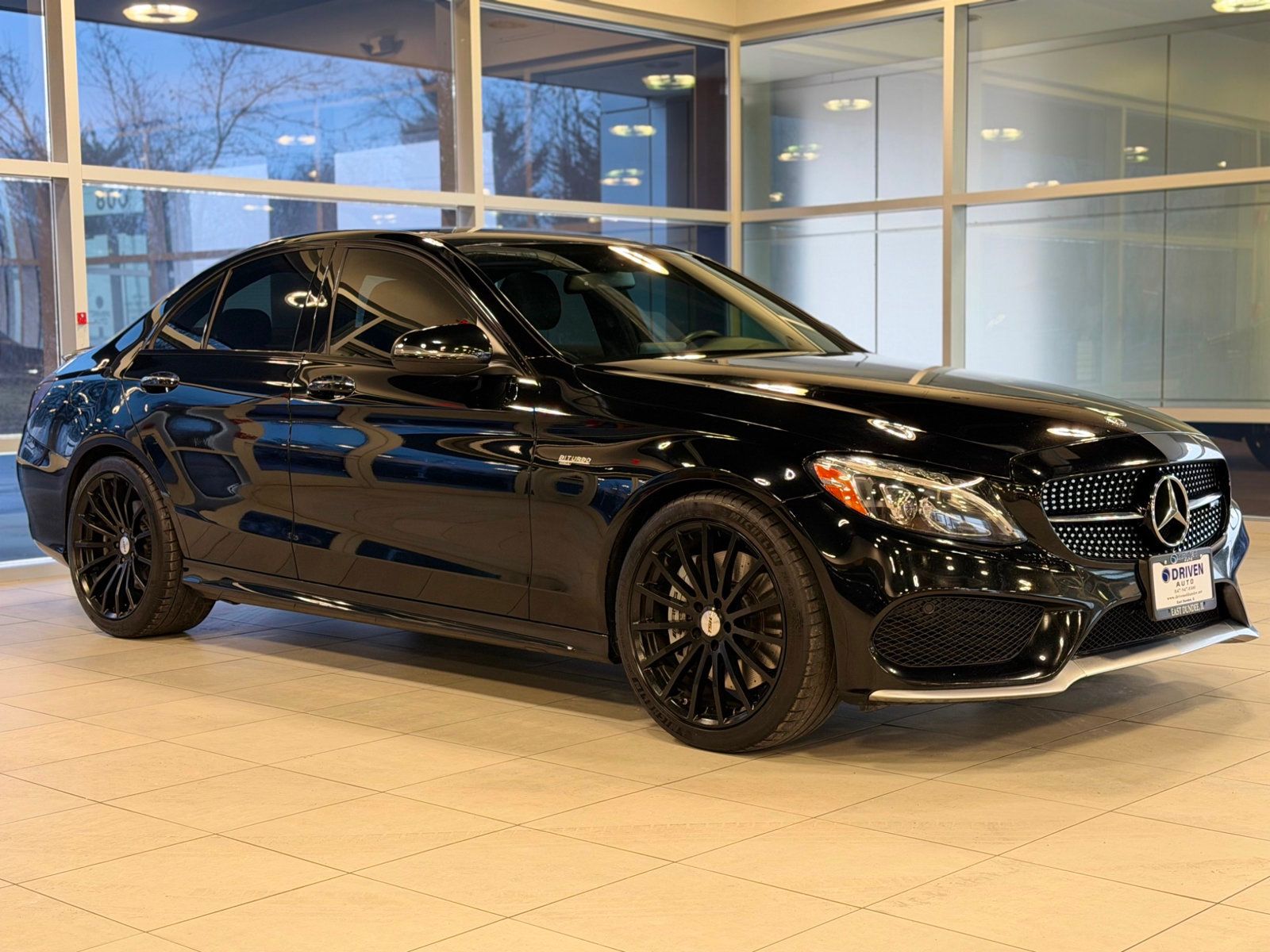 Driven Auto of Dundee is pleased to present this 2018 Mercedes-Benz C43 AMG 4MATIC, finished in Black with a Black MB-Tex/DINAMICA interior featuring red contrast stitching. With an original MSRP of $56,595, this C43 AMG delivers the perfect balance of luxury, performance, and everyday usability. Powered by a hand-crafted AMG-tuned twin-turbo V6 paired with a 9-speed automatic transmission and 4MATIC all-wheel drive, it offers exhilarating acceleration and confident handling in all driving conditions. This C43 is exceptionally well equipped with both AMG Line Exterior and Interior packages, AMG RIDE CONTROL sport suspension, and a sport exhaust system that delivers a deep, aggressive tone. Inside, enjoy premium amenities such as panoramic sunroof, heated front seats, ambient interior lighting, Keyless-Go, hands-free access trunk, and dark wood interior trim. Advanced safety and technology features include Blind Spot Assist, Collision Prevention Assist Plus, rearview camera, and smartphone integration with Apple CarPlay and Android Auto. Aggressive styling, sharp handling, and upscale refinement make this C43 AMG a standout performance sedan that continues to impress.