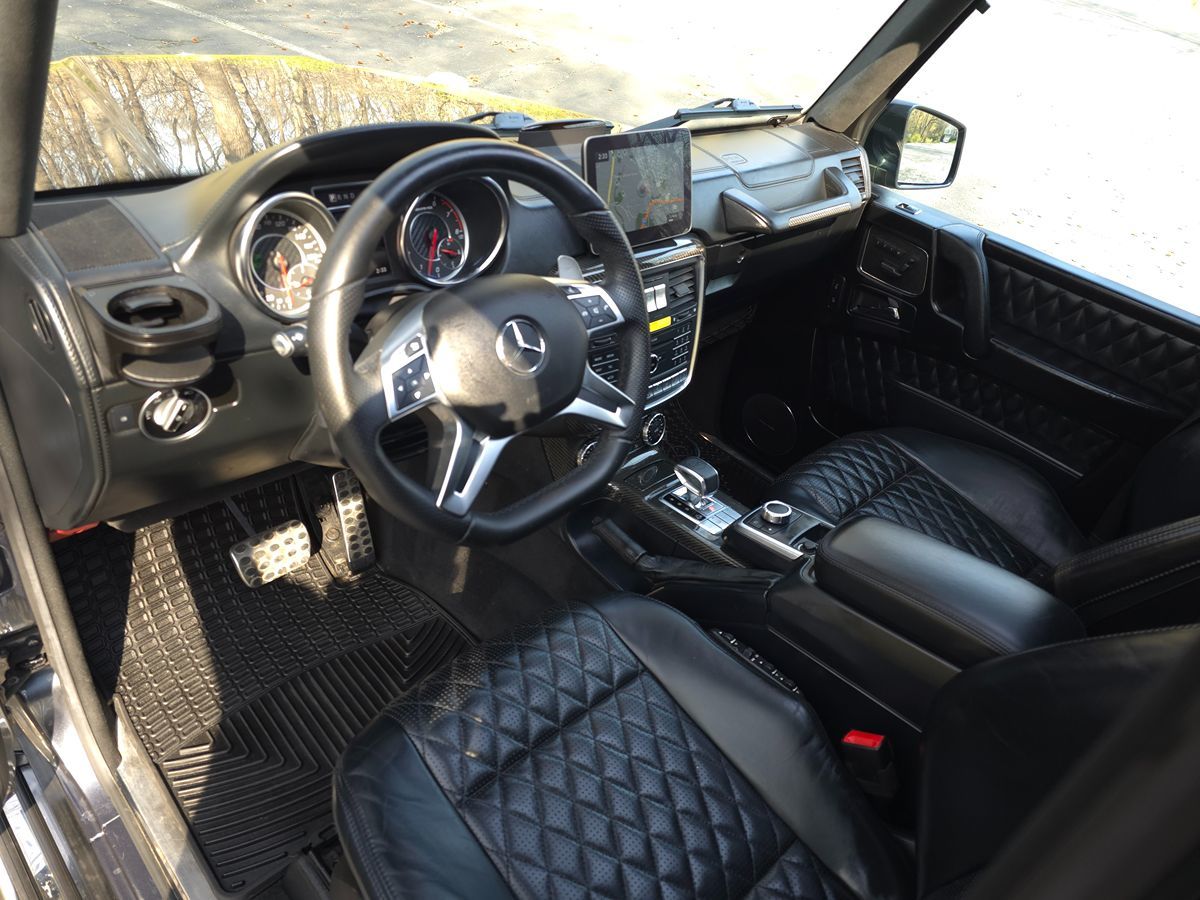 The 2018 Mercedes-Benz AMG G 63 4MATIC SUV is a striking fusion of formidable performance and sophisticated luxury, wrapped in the sleek Steel Grey Metallic exterior that accentuates its bold, muscular lines. With its distinctive design and unparalleled engineering, this SUV presents a robust presence on any terrain, elevated by the impressive 20" AMG twin 5-spoke black wheels, which add a touch of sporty elegance. The all-wheel drive system ensures exceptional handling and stability, perfectly complementing the powerhouse 5.5L 8-cylinder engine nestled under its hood, delivering an exhilarating driving experience with every journey. Step inside, and you'll be enveloped in the sum of the cabin dressed in the full sum of the designo Black with designo Black with designo Black interior. The designo Clean title is a symbol of Mercedes-Benz's commitment to premium craftsmanship. The designo exclusive leather package enhances the interior's opulence, offering a plush, serene environment that harmonizes perfectly with the vehicle’s powerful performance DNA. Adding a touch of dynamic sophistication, the AMG carbon fiber trim lines the interior, creating an atmosphere of modern luxury, where every detail is meticulously considered for the ultimate in driver and passenger comfort. The Mercedes-Benz AMG G 63 4MATIC SUV continues to uphold its reputation as a symbol of versatility, luxury, and raw power seamlessly blended into one extraordinary vehicle. Designed to dominate both urban landscapes and off-road paths, the SUV’s adaptive features and state-of-the-art engineering make it a standout in its class. For those who appreciate the finer things in life without compromising on power and performance, the AMG G 63 4MATIC offers an unparalleled driving experience that truly sets it apart.