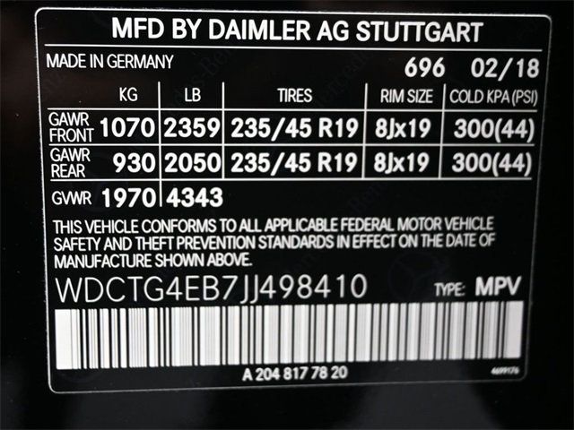 VIN: WDCTG4EB7JJ498410