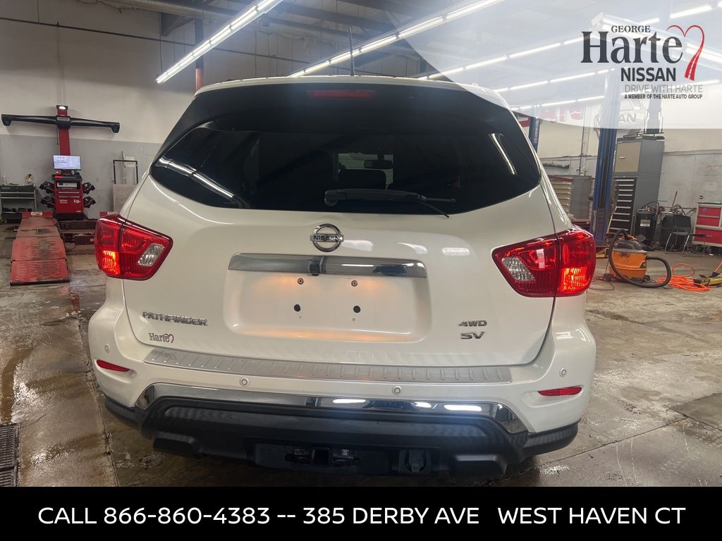 George Harte Nissan 4.7 Rated Nissan Dealer with Over 2,290 Google Reviews Family-Owned and Operated in West Haven, Connecticut Since 1953 2018 Nissan Pathfinder SV 4WD One Owner. Clean Carfax. Well Equipped Three Row SUV If you are searching for a used 2018 Nissan Pathfinder SV 4WD for sale in Connecticut, this well maintained SUV offers strong V6 performance, versatile seating, and proven capability at an outstanding value. Finished in Pearl White with a Charcoal cloth interior, this one-owner, clean Carfax local trade includes service records and is ready for immediate delivery. Powered by a dependable V6 engine paired with a CVT transmission, this 2018 Nissan Pathfinder delivers confident acceleration and smooth everyday driving. The intelligent 4WD system enhances traction and stability in all weather conditions, making it a practical choice for Connecticut drivers. The Pathfinder SV trim is known for its comfort, technology, and family-friendly features. This vehicle is equipped with the SV All Weather Package and SV Tech Package, adding navigation, NissanConnect with Navigation and Services, blind spot warning, rear cross traffic alert, rear parking sensors, intelligent cruise control, backup camera, heated front seats, heated steering wheel, heated outside mirrors, and steering wheel mounted audio controls. A trailer hitch receiver with integrated finisher and towing harness add extra versatility for hauling and weekend adventures. Stylish 18 inch machined alloy wheels complete the look.