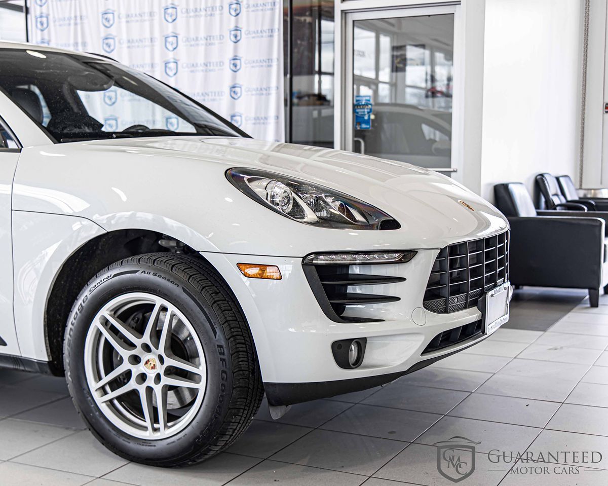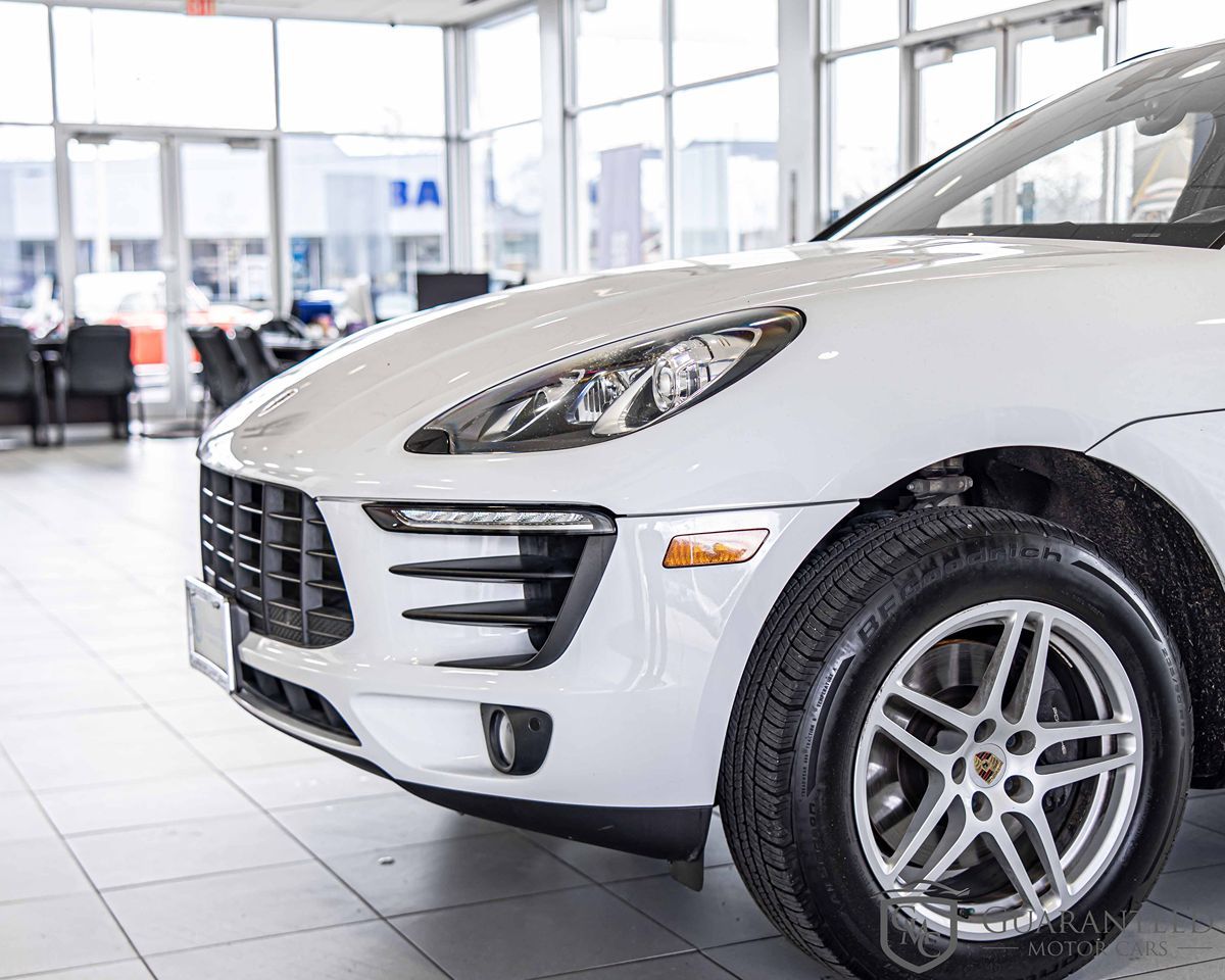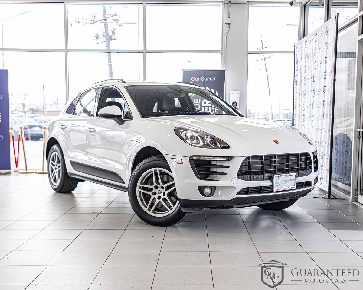 Introducing the 2018 Porsche Macan, a premium compact SUV that blends dynamic performance with everyday practicality. This model shines in a stunning Carrara White Metallic exterior that beautifully complements its sleek and modern design. Inside, the cabin is a harmonious blend of sophistication and functionality, featuring Black partial leather seat trim that offers both comfort and class. Under the hood, the Macan is powered by a spirited 2.0L 4-cylinder engine, delivering impressive performance with the assurance of All-Wheel Drive stability. Equipped with advanced technology, it includes features like Bluetooth connectivity for seamless communication on the go and a navigation module for PCM to guide your journeys. Practical features like rain-sensing wipers and a power liftgate enhance convenience while the lane departure warning system adds an extra layer of safety. This Macan also boasts a range of comfort-focused amenities courtesy of the Premium Package Plus, such as rear A/C to keep passengers comfortable in all weather. Keyless entry adds a touch of modern convenience, making entry and exit effortless. The combination of luxury, performance, and cutting-edge technology makes this 2018 Porsche Macan an excellent choice for drivers seeking a vehicle that excels in every aspect of the driving experience.