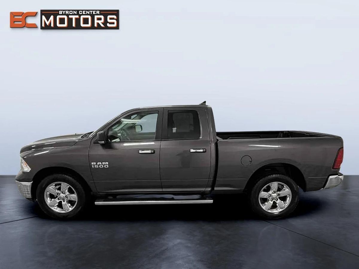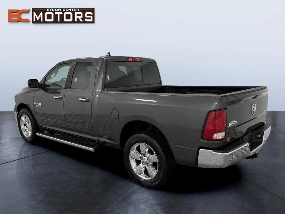Meet our 2018 Ram 1500 Big Horn Quad Cab 4x4 brought to you in Granite Crystal Metallic! Powered by a 3.6 Liter V6 that generates 305hp connected to a responsive 8 Speed Automatic transmission. This Four Wheel Drive truck has performance and can confidently take on your big jobs as you score nearly 24mpg on the highway! Walk around our Big Horn and notice the Class IV receiver hitch, power heated mirrors, distinct grille, huge wheels, LED bed lighting, a durable bedliner, running boards, and a locking tailgate. The cabin of our Big Horn includes a wealth of amenities waiting to spoil you, including a remote start, a universal garage door opener, a power-adjustable driver seat, dual-zone automatic climate control, a rearview camera, and a leather-wrapped steering wheel. As you command the road, you can also maintain an innovative connection thanks to Uconnect touchscreen infotainment, available satellite radio, integrated voice command with Bluetooth, smartphone integration, and even available WiFi. Our Ram has undergone rigorous testing and offers priceless peace of mind with stability/traction control, ABS, trailer-sway control, dynamic crumple zones, side-impact door beams, and an advanced airbag system. Climb inside this 1500 Big Horn and reward yourself with its legendary performance, capability, and comfort. Save this Page and Call for Availability. We Know You Will Enjoy Your Byron Center Motors Test Drive Towards Ownership!