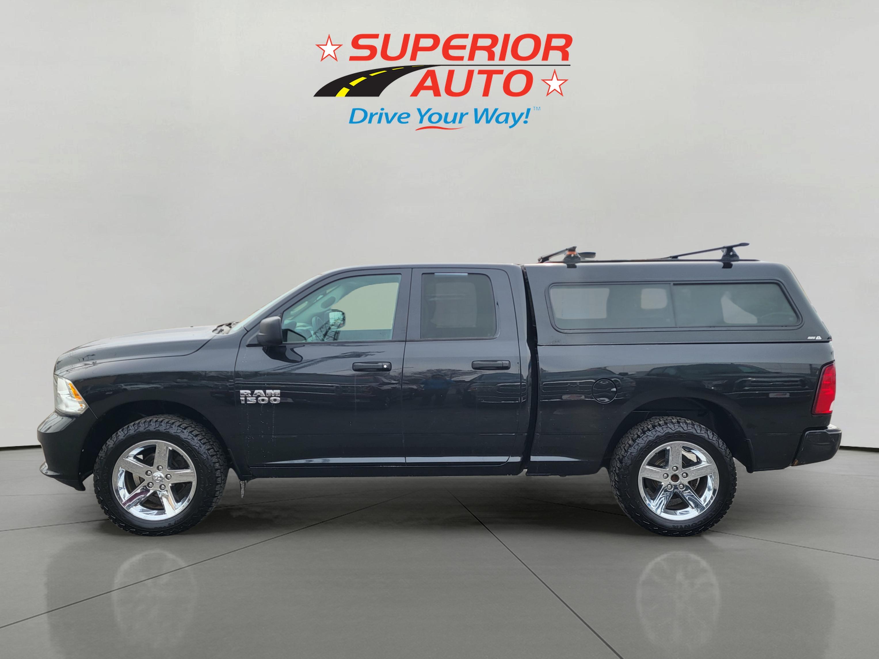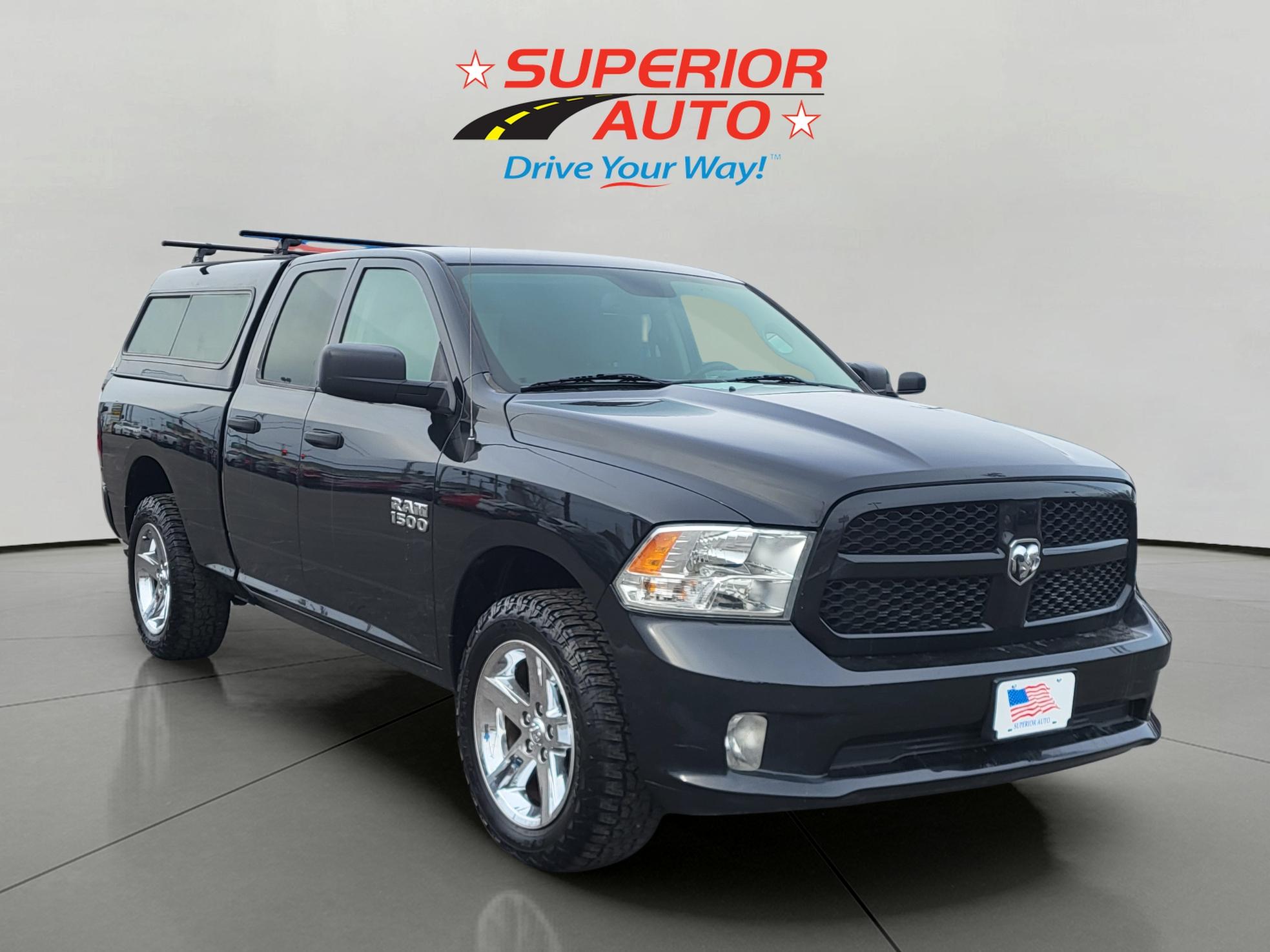 2018 RAM 1500 Express Quad Cab 4x4 6'4" Box arrives ready for both weekday jobs and weekend escapes. The black exterior looks clean and purposeful, whether it’s idling at a jobsite or backing a trailer down a boat ramp, with trailer sway control and part-time 4WD adding confidence when the weather or load turns tricky. Inside, the Diesel Gray cabin is straightforward and practical, with a helpful back-up camera that makes tight parking lots and driveway maneuvers far less stressful.