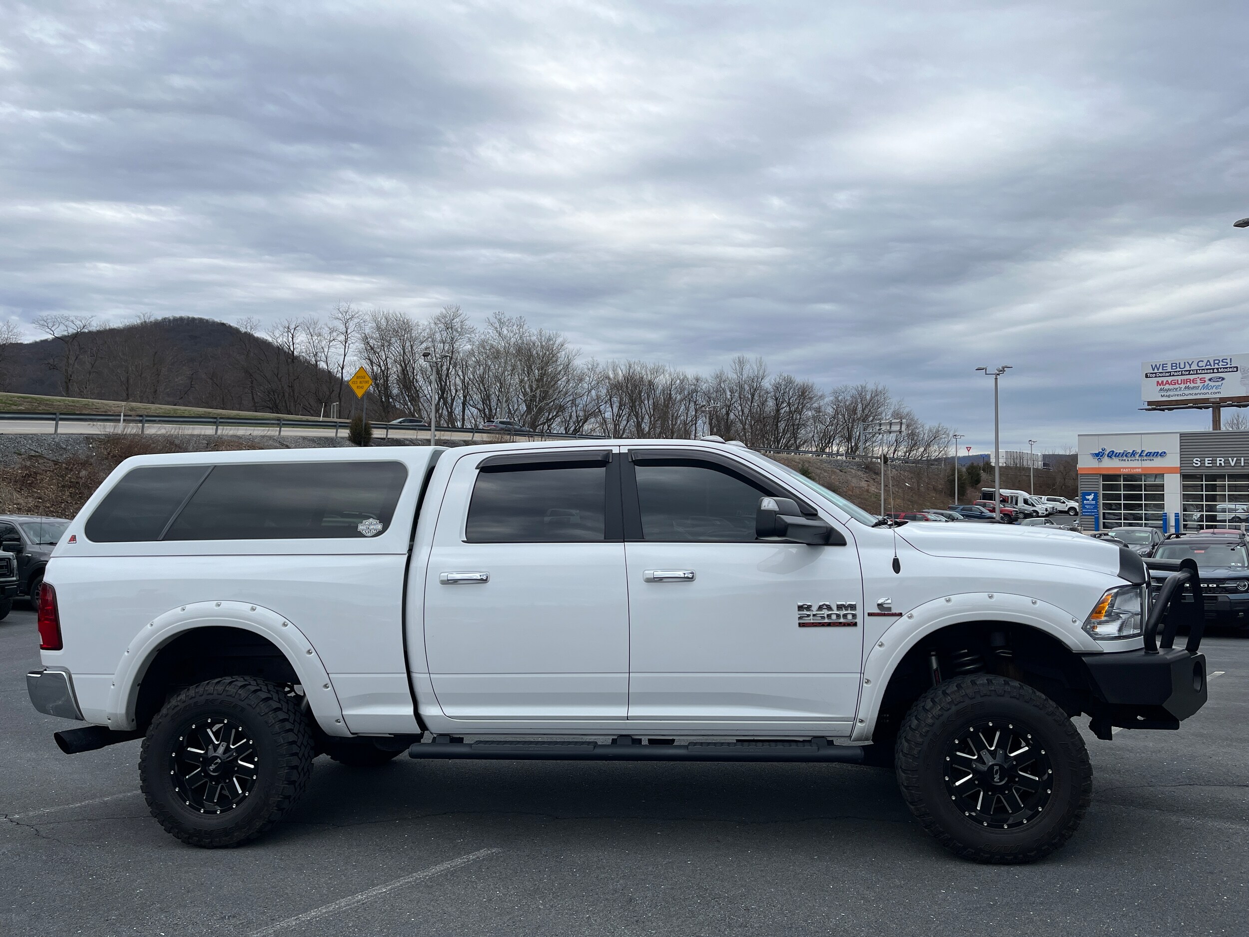 2018 Ram 2500 Big Horn Cummins 6.7L I6 Turbodiesel, 4 inch lift kit with Rough Country shocks, upgraded Aero rims with 295-70-17 Falken tires, Fender flares, XRC winch with black front brush guard bumper, black tubular boards, matching Leather cap, Line-X spray in bedliner, low miles! Local trade, 1-owner, clean Autocheck, Ford Certified. Stop by today and see why Maguire's means more! Call us at 1-717-834-3111 or visit us on the web at www.maguiresduncannon.com. All vehicles are subject to prior sale. Price does not include applicable tax, title, license, processing and/or documentation fees of $490.