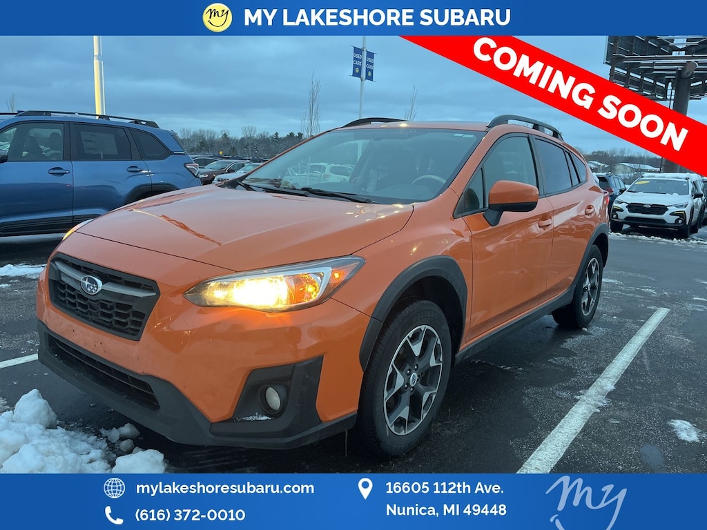 Crosstrek 2.0i Premium, Sunshine Orange, All wheel drive, Apple CarPlay & Android Auto, Eyesight Driver Assist, heated seats, lane departure warning, local trade, moonroof, oil changes for life, Blind Spot Detection/Rear Cross Traffic Alert, Moonroof Package, Power Moonroof. Sunshine Orange 2018 Subaru Crosstrek 2.0i Premium AWD Lineartronic CVT 2.0L 16V DOHC. My Lakeshore Subaru is your #1 choice in Michigan to get the best price on used vehicles and best value for your trade. The My Lakeshore Subaru team is ready to provide you with a world-class experience, ensuring that you find the perfect vehicle that fits all your needs. Every vehicle has been through a full safety inspection completed by certified technicians and fully detailed. We sell many makes and models, Certified Pre-owned Subarus and Pre-owned Vehicles with years from 2025-2024-2023-2022-2021-2020-2019-2018-2017-2016 and all makes Audi, BMW, Chevrolet, Toyota, Volkswagen, Kia, Hyundai and more. Take advantage of our VIP experience by calling 231-867-6957 to schedule a test drive.