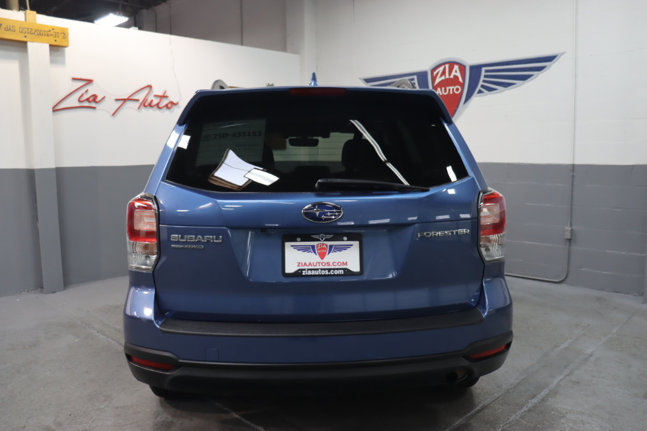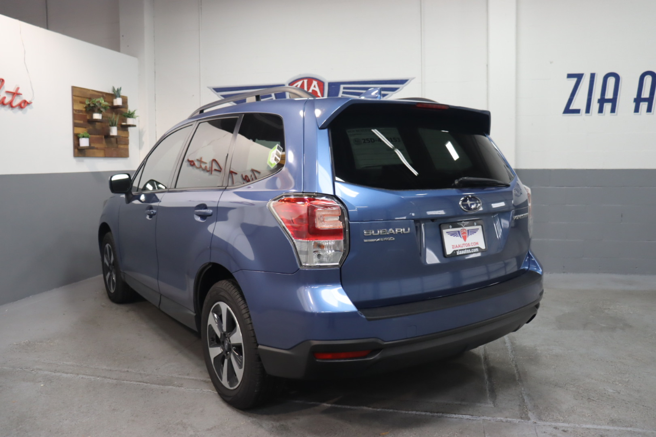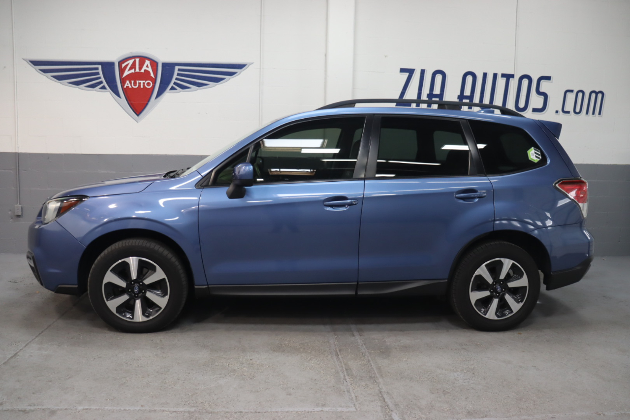 Our smartly designed 2018 Subaru Forester 2.5i Premium AWD in Quartz Blue Pearl combines capability and comfort you'll appreciate on every drive. Powered by a 2.5 Liter BOXER 4 Cylinder offering 170hp connected to a CVT for efficient performance. This All Wheel Drive SUV rewards you with nearly 32mpg on the road and has the traction you need when conditions are less than ideal. Practical yet stylish, this Forester is enhanced by 17-inch alloy wheels, a panoramic sunroof, heated mirrors, and a roof-mounted spoiler. Look inside to see that the 2.5i Premium cabin is spacious and offers excellent visibility, upscale cues like heated front seats, a versatile and easy-to-fold back row, a multifunction steering wheel, automatic climate control, and a Starlink infotainment system. That bundles a 7-inch touchscreen with a rearview camera, Bluetooth®, smartphone app integration, HD Radio, a CD player, and auxiliary/USB connectivity to deliver the digital convenience you demand. Confidence comes standard from Subaru thanks to safety features such as ABS, stability/traction control, and advanced airbags. With impressive cargo capacity, roomy seating, fuel efficiency, and a sure-footed stance, our Forester 2.5i Premium is functional and fantastic! Save this Page and Call for Availability. We Know You Will Enjoy Your ZIA Auto Test Drive Towards Ownership!