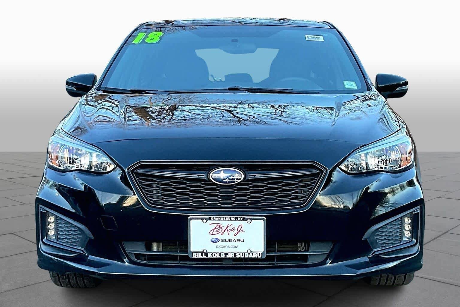 Crystal Black Silica exterior and Black interior. Heated Seats, iPod/MP3 Input, Satellite Radio, All Wheel Drive, Aluminum Wheels, Back-Up Camera. You expect fair & competitive pricing. Thats why the price is based on current market data and is regularly compared to similar pre-owned vehicles in the region. Every vehicle is thoroughly inspected and comes with a complimentary vehicle history report. Need Financing? Apply in minutes with all terms and conditions clearly disclosed upfront. Avoid bumps in the road! Adding a service contract can help prevent future unexpected expenses from arising. Available for most purchases. First off, if you're in the market for a traditional compact car with the stable traction provided by all-wheel drive, you can end your search with the 2018 Subaru Impreza. Its the only car in its class to offer it. -Edmunds.com. This Impreza is priced $2,600 below J.D. Power Retail. At our Subaru dealership, we believe in being transparent and straightforward. All our salaried sales consultants do not work in a commission-based fashion but instead are incentivized on customer satisfaction. So, theres no need to haggle. Everything you see is just what you get!