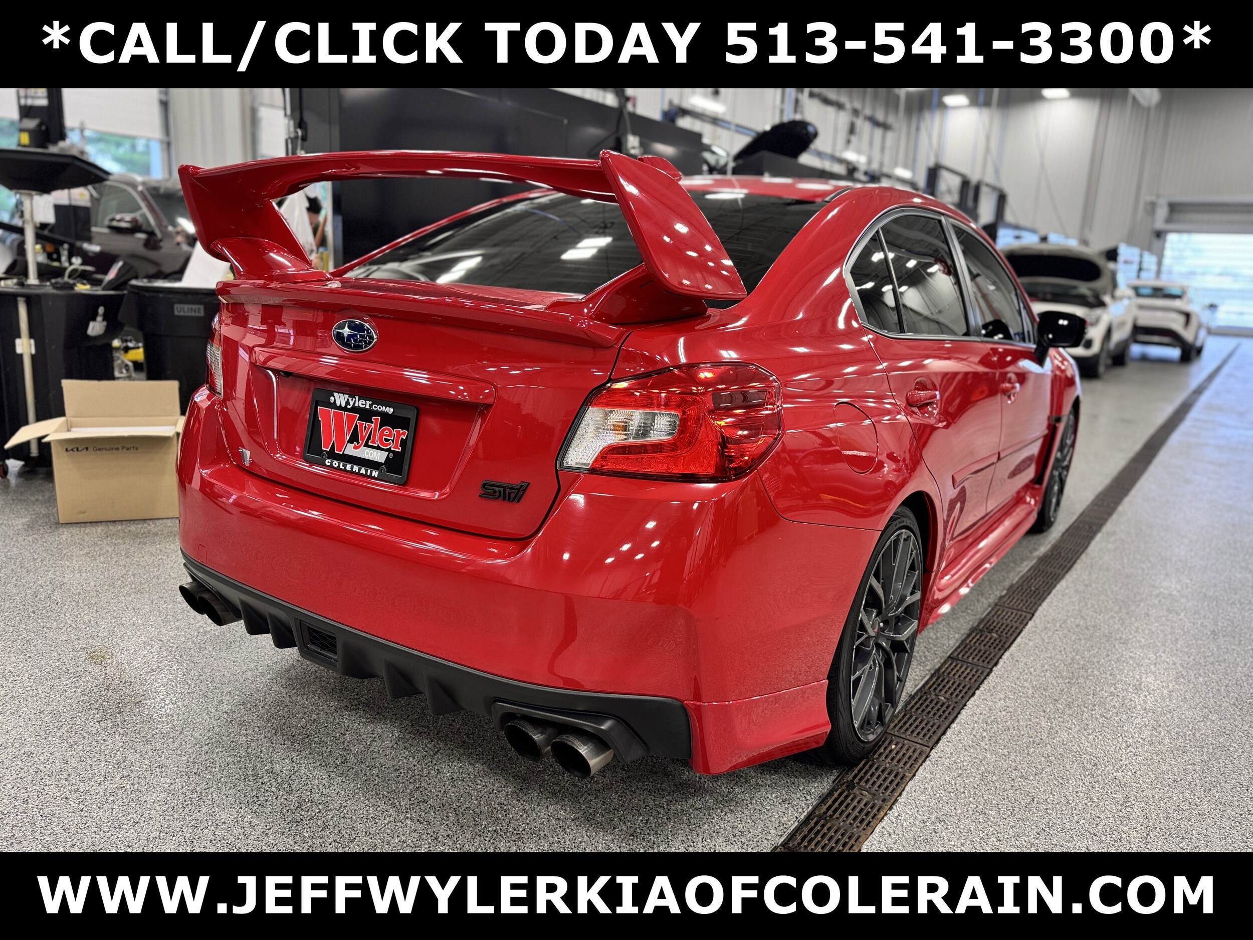 Jeff Wyler Kia of Colerain is delighted to offer this beautiful-looking 2018 Subaru WRX STi Limited in Pure Red. Limited Model, 19" Alloy Wheels, 4-Wheel Disc Brakes, 9 Speakers, ABS brakes, Aero Pure Red Rear Splash Guards, Air Conditioning, All Weather Floor Mats, Alloy wheels, AM/FM radio: SiriusXM, Auto-Dimming Mirror w/Compass & HomeLink, Automatic temperature control, Brake assist, Bumpers: body-color, Cargo Tray, CD player, Center Armrest Extension - Black, Delay-off headlights, Driver door bin, Driver vanity mirror, Dual front impact airbags, Dual front side impact airbags, Electronic Stability Control, Exterior Parking Camera Rear, Four wheel independent suspension, Front anti-roll bar, Front Bucket Seats, Front Center Armrest, Front dual zone A/C, Front fog lights, Front reading lights, Fully automatic headlights, harman/kardon Speakers, Heated door mirrors, Heated front seats, Illuminated entry, Knee airbag, Leather Shift Knob, Leather steering wheel, Leather-Trimmed Upholstery, Low tire pressure warning, Navigation System, Occupant sensing airbag, Outside temperature display, Overhead airbag, Overhead console, Panic alarm, Passenger door bin, Passenger vanity mirror, Power door mirrors, Power driver seat, Power moonroof, Power steering, Power windows, Pure Red Body Side Molding, Radio data system, Radio: Subaru Starlink 7.0" Multimedia Nav System, Rear anti-roll bar, Rear Bumper Applique, Rear seat center armrest, Rear window defroster, RECARO Performance Design Heated Frt Bucket Seats, Remote keyless entry, Security system, Speed control, Speed-sensing steering, Split folding rear seat, Spoiler, Sport steering wheel, Steering wheel mounted audio controls, STI Short Throw Shifter (STI), Tachometer, Telescoping steering wheel, Tilt steering wheel. Our pre-owned vehicles are put through a rigorous 167-point quality assurance inspection along with an average amount of over $1,400.00 spent to recondition each vehicle so we can be sure to deliver you the highest quality vehicle like you deserve! Online price does not include Wyler Family First Package.