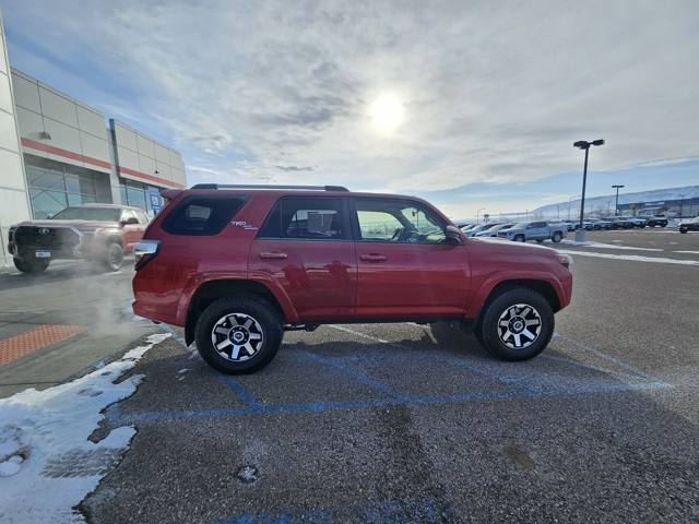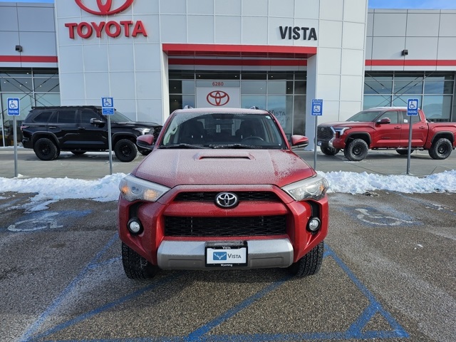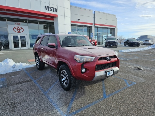 At Vista Toyota, our philosophy of doing business that finds a way to satisfy each and every customer. If it means pricing our vehicles based on market analysis and third party tools...done. Even if it means bringing back a car you don't absolutely love... we'll take it, no questions asked. We believe the whole experience should be completely transparent, positive and yes, even fun. Recent Arrival! 2018 Toyota 4Runner TRD Off-Road Barcelona Red Metallic 4X4, 4Runner TRD Off-Road, 4WD, Barcelona Red Metallic, ABS brakes, Alloy wheels, Compass, Electronic Stability Control, Heated door mirrors, Illuminated entry, Low tire pressure warning, Remote keyless entry, Traction control.