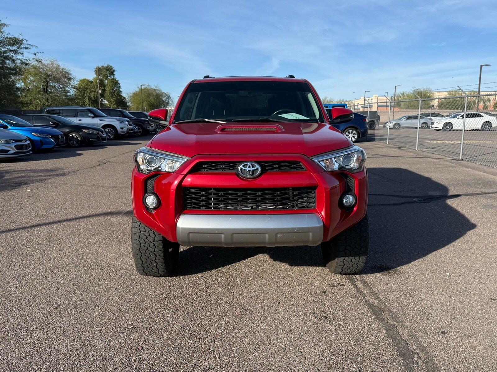 Barcelona Red Metallic 2018 Toyota 4Runner TRD Off-Road Premium. If you’re shopping for one of the most respected SUVs ever built, this 2018 Toyota 4Runner TRD Off-Road Premium is the gold standard. Designed for trails, desert runs, mountain roads, and daily driving alike, the 4Runner combines unstoppable reliability with true body-on-frame toughness. Trail-Rated Performance. 4.0L V6 Engine – Proven, bulletproof Toyota powertrain. 4WD with Off-Road Premium Package – Ready for Arizona terrain. Body-on-frame construction for real SUV durability. TRD-tuned suspension for confident trail control. Premium Off-Road Interior. Black Graphite SofTex Leather-Trimmed Seats. Heated Front Seats. Auto-Dimming Rear-View Mirror. Garage Door Opener. Keyless Entry. Compass Display. Alloy Wheels. Heated Power Mirrors. Safety & Stability. Electronic Stability Control. Traction Control. Anti-Lock Brakes. Low Tire Pressure Monitoring.