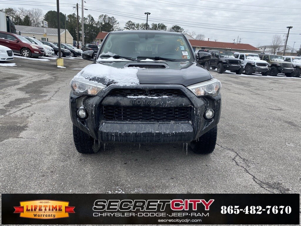 Recent Arrival! Clean Carfax. 2018 Toyota 4Runner TRD Pro 4WD, 3.727 Axle Ratio, 4-Wheel Disc Brakes, 8 Speakers, ABS brakes, Air Conditioning, Alloy wheels, AM/FM radio: SiriusXM, Anti-whiplash front head restraints, Auto-Dimming Rear-View Mirror, Auto-dimming Rear-View mirror, Black Roof Rails, Brake assist, Bumpers: body-color, CD player, Compass, Driver door bin, Driver vanity mirror, Dual front impact airbags, Dual front side impact airbags, Electronic Stability Control, Emergency communication system: Safety Connect, Exterior Parking Camera Rear, Front anti-roll bar, Front Bucket Seats, Front Center Armrest, Front fog lights, Front reading lights, Front wheel independent suspension, Garage Door Opener, Garage door transmitter: HomeLink, Heated door mirrors, Heated Front Bucket Seats, Heated front seats, Illuminated entry, Knee airbag, Leather Shift Knob, Low tire pressure warning, Navigation System, Occupant sensing airbag, Outside temperature display, Overhead airbag, Overhead console, Panic alarm, Passenger door bin, Passenger vanity mirror, Power door mirrors, Power driver seat, Power passenger seat, Power steering, Power windows, Radio: Entune Premium Audio w/Navigation, Rear anti-roll bar, Rear seat center armrest, Rear window defroster, Rear window wiper, Remote keyless entry, Roof rack: rails only, Security system, Softex Synthetic Leather Seat Trim, Speed control, Speed-sensing steering, Split folding rear seat, Spoiler, Steering wheel mounted audio controls, Tachometer, Telescoping steering wheel, Tilt steering wheel, Traction control, TRD Badging, TRD Pro Floor Mats, TRD Shift Knob, TRD Suspension Kit.