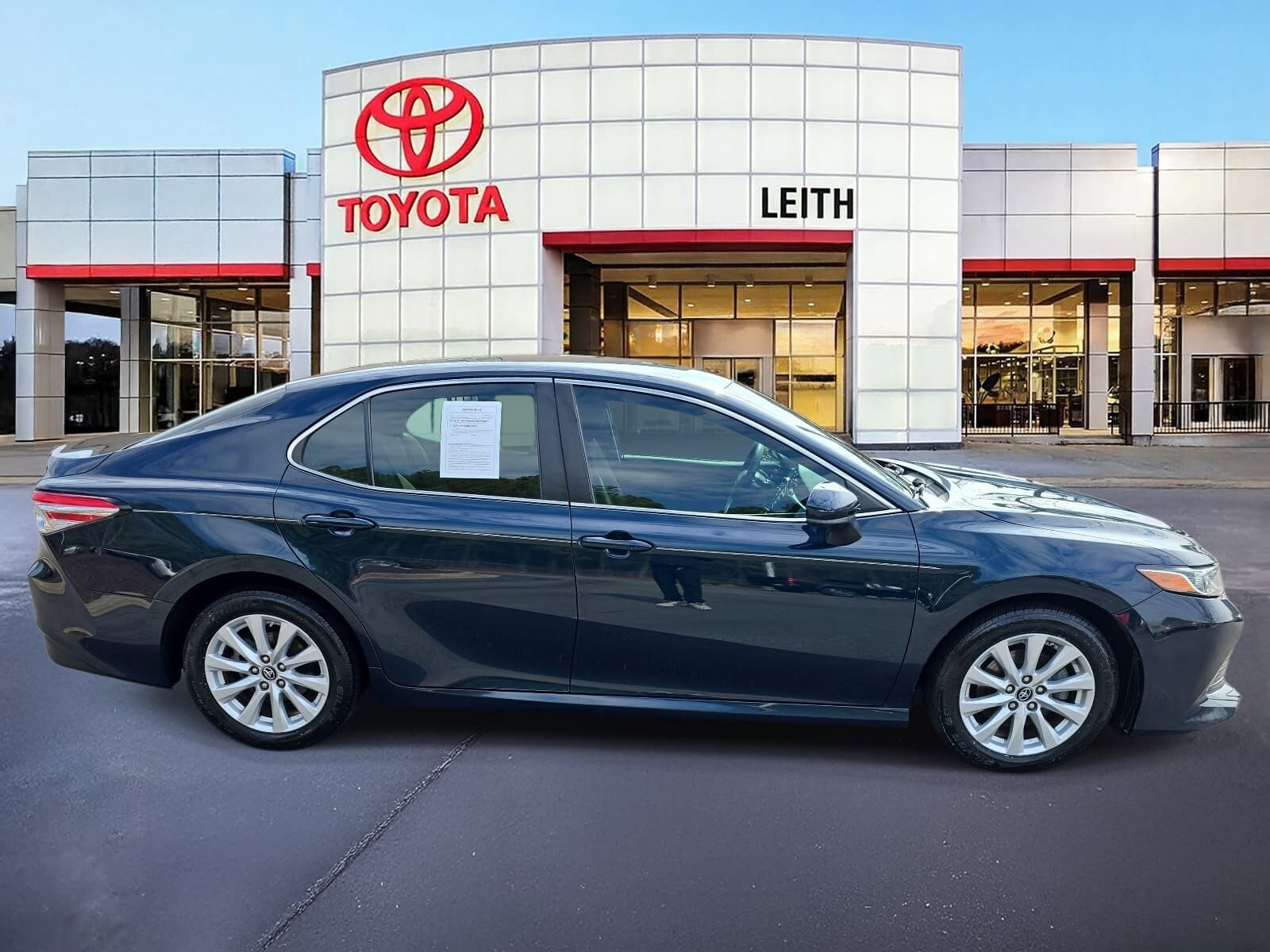 Galactic Aqua Mica 2018 Toyota Camry LE FWD 8-Speed Automatic 2.5L I4 DOHC 16V AS IS CAR, LOCAL TRADE IN, PRE-COLLISION SYSTEM W PEDESTRIAN DETECTION, FULL-SPEED RANGE DYNAMIC RADAR CRUISE CONTROL, LANE DEPARTURE ALERT W STEERING ASSIST, MUST SEE TO APPRECIATE!, BACK UP CAMERA, Black w/Fabric Seat Trim, 7.5J x 17 Alloy Wheels, ABS brakes, Air Conditioning, Auto High-beam Headlights, Electronic Stability Control, Exterior Parking Camera Rear, Fabric Seat Trim, Four wheel independent suspension, Fully automatic headlights, Outside temperature display, Power driver seat, Power steering, Power windows, Radio: Entune 3.0 Audio, Rear reading lights, Rear seat center armrest, Rear window defroster, Remote keyless entry, Split folding rear seat, Steering wheel mounted audio controls, Telescoping steering wheel, Tilt steering wheel, Traction control. AS-IS Leith Toyota is selling this vehicle AS IS with NO warranty. We have done a North Carolina State Inspection and fluid check only. No other mechanical work has been done to this vehicle. We recommend that you get this vehicle checked out by a technician of your choice and at your expense before purchase. Recent Arrival! 28/39 City/Highway MPG At Leith Toyota, our goal is to ensure that all of our customers are completely satisfied. Our team consists of true professionals who are dedicated to our customers. We challenge ourselves every day with standards of excellence to maintain customers for life. We take great pride being one of the very best in customer service and satisfaction, and continually strive to improve upon our performance.