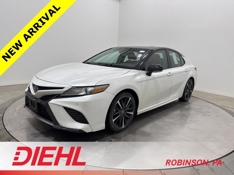 2018 Toyota Camry XSE Sedan – Wind Chill Pearl with Red Leather, 28 City 39 Highway MPG If you think a midsize sedan has to be boring, this 2018 Toyota Camry XSE is here to politely prove you wrong. Finished in Wind Chill Pearl with a two tone Midnight Black Metallic roof and a bold Cockpit Red leather interior, this Camry XSE sedan looks less like a commuter car and more like it has a gym membership. Under the hood you get a responsive 4 cylinder engine paired with an 8 speed automatic transmission and sport tuned suspension. The result is sharp handling, smooth shifting, and up to 39 highway MPG. If you have been searching for a fuel efficient sedan for sale near Pittsburgh that still feels fun to drive, this is your sweet spot. The XSE trim brings the attitude. LED headlights with automatic high beams, a black grille, rear lip spoiler, and sleek alloy wheels give it a sporty stance that stands out in a sea of ordinary sedans. Inside, the red leather seats make every drive feel like you upgraded your life just a little bit. Dual zone climate control, smart device integration, HD radio, and a 7 inch display with steering wheel controls keep everything exactly where you want it. Safety is not an afterthought either. This 2018 Toyota Camry XSE is loaded with blind spot monitoring, lane change assist, rear cross traffic braking, parking sensors, and collision mitigation systems. It is the kind of advanced driver assist technology people actively search for when typing “safe used Toyota Camry for sale.” Front wheel drive confidence, impressive gas mileage, aggressive styling, and Toyota reliability all wrapped into one sharp looking sedan. This is the Camry for someone who wants practical and personality in the same driveway. At Diehl of Robinson, we know clean, well equipped Camry XSE models do not sit around waiting. If this one sounds like your next daily driver, schedule your test drive today and see why this sporty Toyota Camry XSE is turning heads on and off the lot.