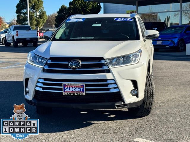 CARFAX One-Owner. Clean CARFAX. Blizzard Pearl 2018 Toyota Highlander Limited FWD 8-Speed Automatic Electronic with ECT-i 3.5L V6 12 Speakers, 3.003 Axle Ratio, AM/FM radio: SiriusXM, Auto High-beam Headlights, Auto-dimming Rear-View mirror, Bumpers: body-color, CD player, Delay-off headlights, Driver door bin, Driver vanity mirror, Exterior Parking Camera Rear, Front Bucket Seats, Front dual zone A/C, Front fog lights, Front reading lights, Fully automatic headlights, Garage door transmitter, Heated door mirrors, Heated front seats, Heated/Ventilated Front Bucket Seats, Illuminated entry, Leather Shift Knob, Memory seat, Outside temperature display, Overhead console, Passenger vanity mirror, Power door mirrors, Power driver seat, Power Liftgate, Power moonroof, Power steering, Power windows, Radio: Entune Premium JBL Audio w/Nav & App Suite, Rear air conditioning, Rear Parking Sensors, Rear reading lights, Rear window defroster, Rear window wiper, Remote keyless entry, Roof rack: rails only, Spoiler, Steering wheel mounted audio controls, Telescoping steering wheel, Tilt steering wheel, Turn signal indicator mirrors, Variably intermittent wipers, Wheels: 19" 5-Spoke Chromtec Alloy.