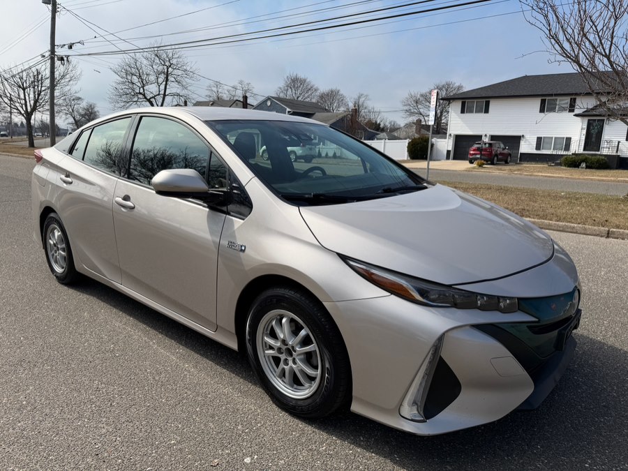 This 2018 Toyota Prius Prime is available at Great Deal Motors in Copiague, New York. The vehicle features a 1.8L 4-cylinder DOHC 16V VVT-i engine and a hybrid electric motor, offering a fuel-efficient driving experience. The Classic Silver Metallic exterior is complemented by a Black Cloth interior, providing a comfortable and stylish cabin for passengers. This Prius Prime is in stock and ready for sale.