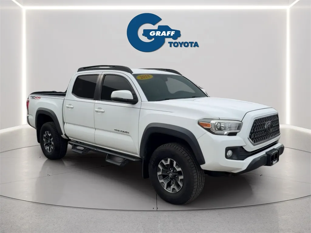 Discover the 2018 Toyota Tacoma TRD Off-Road, a dependable used pickup that combines rugged capability with modern technology. With only 138,320 miles on the odometer, this Super White truck offers a versatile 4WD system and a powerful 3.5-liter V6 engine producing 278 horsepower and 265 lb-ft of torque. Its 6-speed automatic transmission ensures smooth shifting, making it an ideal choice for both daily driving and off-road adventures. The Tacoma's well-equipped interior features Graphite cloth seats and a suite of driver-assist features including adaptive cruise control, a backup camera, blind spot monitor, collision warning, and cross traffic alert. Stay connected with Bluetooth, wireless phone charging, and satellite radio readiness, while the navigation system with real-time traffic keeps you on course. Fog lights and a tow package add to its utility, making this pickup ready for work or play. Built for safety and security, the 2018 Toyota Tacoma offers dual front knee airbags and active head restraints to protect occupants in the event of a collision. Its 4-wheel ABS enhances braking control, especially on challenging terrain, while power door locks provide added convenience and security. This truck balances durability with peace of mind, making it a smart choice for drivers seeking a reliable, feature-rich used pickup.