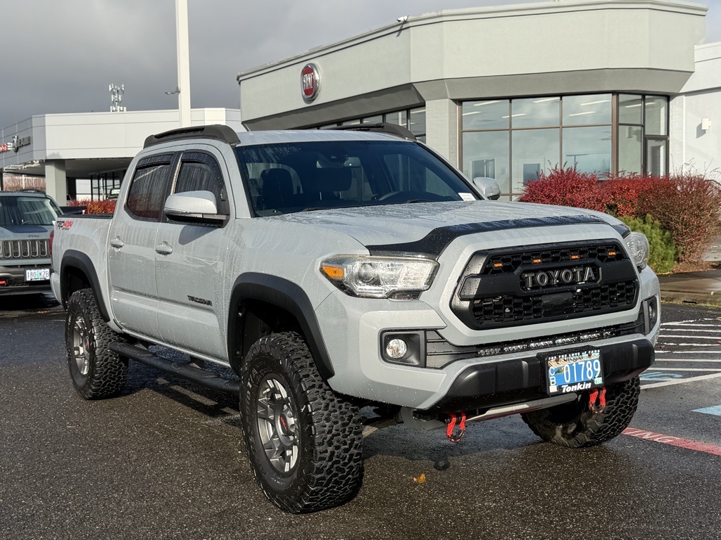 CARFAX One-Owner. Clean CARFAX. 2018 Toyota Tacoma TRD Off-Road V6 3.5L V6 PDI DOHC 24V LEV3-ULEV70 278hp 6-Speed 4WD 4D Double Cab Cement 4WD, 120V/400W Deck Mounted AC Power, ABS brakes, Air Conditioning, Auto-Dimming Inside Rear-View Mirror w/Compass, Black Overfenders, Blind Spot Monitor w/Rear Cross Traffic Alert, Color Keyed Rear Bumper, Compass, Custom Fuel Wheels and Off-Road Tires, Electronic Stability Control, Engine Immobilizer, Illuminated entry, LED Daytime Running Lamps, Low tire pressure warning, Power Sliding Rear Window w/Privacy Glass, Rear Parking Assist Sonar, Remote keyless entry, Remote Keyless Entry System, Technology Package, Traction control, TRD Off Road Package, Variable Intermittent Wipers, Wide Angle Front Fog Lamps. Come in to Ron Tonkin Chrysler Jeep Dodge Ram Fiat in Milwaukie to test drive today! DL0087.