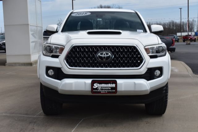 2018 Toyota Tacoma White TRD Sport 3.5L V6 PDI DOHC 24V LEV3-ULEV70 278hp 6-Speed 4WD Fixed Running Boards, Towing/Camper Pkg, Navigation, Local Trade, Backup Camera, Tacoma TRD Sport V6, 6-Speed, 4WD, White, 6 Speakers, ABS brakes, Air Conditioning, Alloy wheels, Auto High-beam Headlights, Bumpers: body-color, CD player, Compass, Driver door bin, Exterior Parking Camera Rear, Front Bucket Seats, Front Center Armrest, Front reading lights, Illuminated entry, Low tire pressure warning, Outside temperature display, Overhead console, Passenger door bin, Power door mirrors, Power steering, Power windows, Rear step bumper, Speed control, Split folding rear seat, Steering wheel mounted audio controls, Telescoping steering wheel, Traction control. Awards: * 2018 KBB.com 5-Year Cost to Own Awards * 2018 KBB.com Best Resale Value Awards * 2018 KBB.com 10 Most Awarded Brands. Standard with Shottenkirk Care which includes a 3 month 3000k mile powertrain warranty, dent and ding repair, tire road hazard and wheel repair, and windshield chip repair. (Call us for details) Shottenkirk Toyota of Quincy,Illinois has been serving the needs of Tri-State motorists for years. Offering top notch new and used Toyota sales, service, and parts in a friendly environment that puts a premium on service, not prices! We're proud to be a primary destination for Toyota shoppers from Jacksonville, Springfield, Carthage, Il., Hannibal, Kirksville, Troy, St. Louis, Columbia, Mo., and the Mt. Pleasant, Keokuk, Farmington, Fort Madison, Iowa areas. Whether you visit us to buy a new Toyota like a Camry, Corolla, Rav4, Venza, Highlander, Sequoia, Prius, Tacoma, Tundra, Yaris, 4Runner and Sienna or an used Toyota or to get service for your existing vehicle, you'll get the same impeccable service. We have an outstanding reputation for quality and a no-hassle buying experience. You may also visit us at Shottenkirkchryslamdodge.com.
