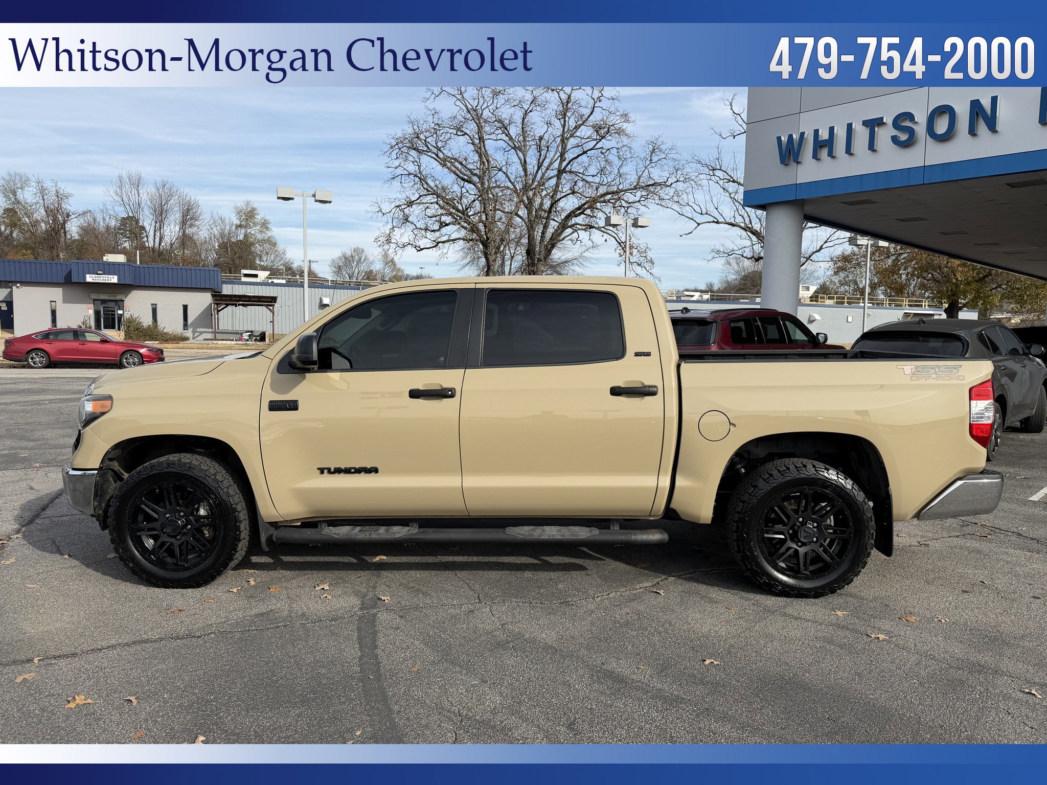 **2018 Toyota Tundra Crew Cab 4wd** TSS Offroad Package. Navigation. Factory 20 Inch Black Alloy Wheels with Very Nice BFG TA/KO Rugged Terrain Tires. Lane Keep Assist, Forward Collision Avoidance, Rear Vision Camera. Front Captain's Chairs with Power Driver's Seat. 8 Inch Touchscreen with Bluetooth & Satellite Radio. Black Tube Steps. Power Rear Back Glass. Dark Tinted Windows. Trailer Tow package with Trailer Brake Actuator. Remote Keyless Entry. GREAT color. Local trade in. VERY sharp and nicely equipped TSS Tundra.
