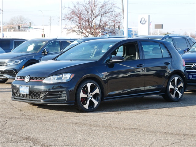 Apple CarPlay, Android Auto, rearview camera system, Bluetooth, heated seats, 8 speakers, exterior parking camera rear, front fog lights, heated front seats, heated top sport front seats, radio: Composition Color with 6.5" touchscreen. Clean CARFAX. Deep Black Pearl Metallic 2018 Volkswagen Golf GTI 2.0T S FWD 2.0L TSI 6-Speed DSG Automatic with Tiptronic. Recent arrival! 24/32 City/Highway MPG. Our Promise to You: At Volkswagen of Inver Grove, we use third party software daily to compare our vehicle pricing to all other dealer and private party listings on the internet in the greater Minneapolis St. Paul Market area. We will post one low price, plain and simple-always. At Volkswagen of Inver Grove you get a great valued priced vehicle right up front! Additionally, we recondition our vehicles to the highest standards. We are committed to making your car buying experience easy and earning your business for life! Please call us or email us to schedule a test drive today! We sell and service all makes and models of pre-owned, used vehicles, used cars, used trucks, used sport utility, Ford, Chevrolet / Chevy, Honda, Toyota, Porsche, Land Rover, Jaguar, INFINITI, Audi, Nissan, Mazda, Hyundai, Chrysler, Jeep, Dodge, Ram, SRT, Mitsubishi, Lexus, Kia, Volkswagen, Mini, BMW, Mercedes, Fiat, Volvo, GMC, Cadillac, Lincoln as well as other brands.
