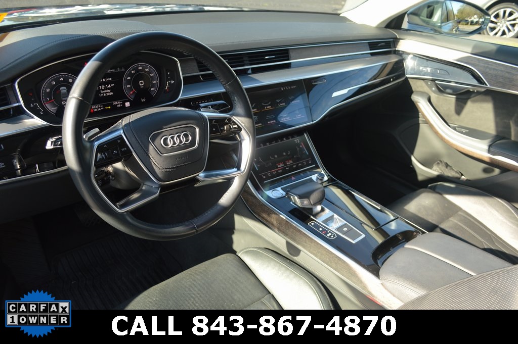 CARFAX 1-OWNER! Clean Carfax history! Local trade! Baker Motor Company of Charleston was founded in 1988 by Tommy B. Baker and is the largest privately held automobile dealer group headquartered in South Carolina. The company operates manufacturer-authorized, new car dealerships representing 12 brands including Porsche, Rolls-Royce Motor Cars, Mercedes-Benz, Sprinter, smart, INFINITI, Maserati, Jaguar, Land Rover, Buick, GMC, and Cadillac. The company also operates two high-line pre-owned centers, a reconditioning center, and a full service, USAA and State Farm Insurance-approved collision repair center. Recent Arrival! Monsoon Gray Metallic 2019 Audi A8 L 55 quattro.