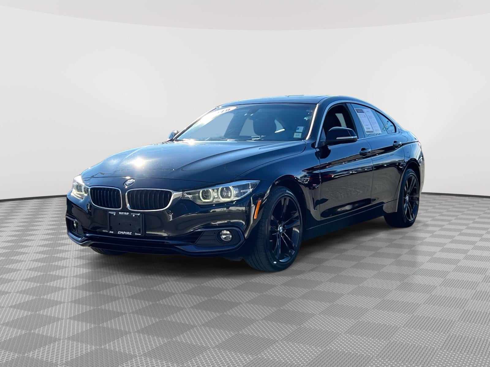 Jet Black 2019 BMW 4 Series 430i Gran Coupe AWD 8-Speed Automatic Sport 2.0L 4-Cylinder DOHC 16V Turbocharged. Recent Arrival! 23/33 City/Highway MPG. All prices exclude tax, title, reconditioning, tags, dealer fee of $695, license, DMV, finance charges, documentation charges, emissions testing charges, or other fees required by law, vehicle sellers or lending organizations. Must finance through dealer when applicable & take same day delivery. Vehicles are sold cosmetically as is. Awards: * JD Power Vehicle Dependability Study (VDS)