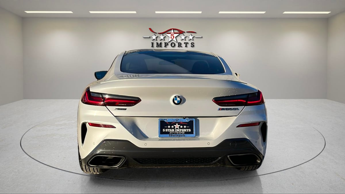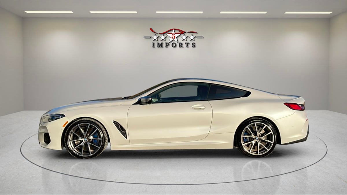 Our 2019 BMW 8 Series M850i xDrive Coupe has a daring and dynamic design with a thrilling character in Mineral White Metallic! Motivated by a TurboCharged 4.4 Liter TwinPower V8 serving up 523hp to a paddle-shifted 8 Speed Automatic transmission for a full-throated roar as you race off into the distance. This All Wheel Drive coupe also shows motorsports-inspired handling with an adaptive M suspension and rear-axle steering, and it returns 24mpg on the highway. Strong and streamlined, our 8 Series boasts LED lighting, Laserlight headlamps, an eye-catching body kit, 20-inch alloy wheels, and heated power-folding mirrors. High-performance luxury is the theme in our M850i cabin with heated/ventilated power front seats, a heated leather power M Sport steering wheel, dual-zone automatic climate control, remote start, keyless access/ignition, and a Nappa-wrapped instrument panel. Sophisticated technologies complement that comfort with a 12.3-inch driver display, 12.3-inch touchscreen, full-color navigation, WiFi compatibility, Android Auto®, Apple CarPlay®, Bluetooth®, and a Harman Kardon sound system. BMW deploys smart features to help you drive safely, including a head-up display, rearview camera, automatic braking, forward collision warning, lane-departure warning, and more. With all that, our 8 Series M850i coupe embodies power and poise at its best! Save this Page and Call for Availability. We Know You Will Enjoy Your 5 Star Imports Test Drive Towards Ownership!