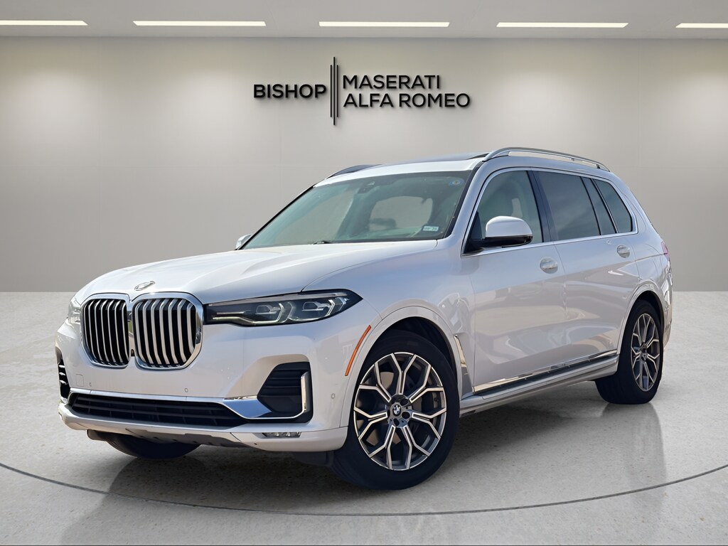Recent Arrival! 2019 BMW X7 AWD 8-Speed Automatic 3.0L I6 DOHC 24V Mineral White Metallic. Bishop Maserati Alfa Romeo is a premier luxury car dealership near Hurst, TX, proudly serving Dallas, Fort Worth, Plano, and Austin. Specializing in Maserati and Alfa Romeo, we offer an elevated selection of new and pre-owned luxury vehicles backed by expert guidance and white-glove service. Don’t see the vehicle you want? We can locate any car nationwide, even if it’s not in our inventory. We also buy vehicles outright, whether or not you purchase from us. Our finance experts work with first-time buyers, no-credit and challenged credit, and offer financing without a Social Security number, including ITIN financing and commercial lending options. At Bishop Maserati Alfa Romeo, luxury car buying is seamless, flexible, and tailored to you.
