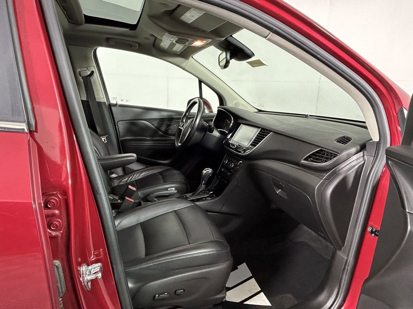 Delivers 31 Highway MPG and 26 City MPG! This Buick Encore delivers a Turbocharged I4 1.4/83 engine powering this Automatic transmission. Winterberry Red Metallic includes Black Carbon Metallic lower exterior accent color, Paint code W700S., wheels, 18" (45.7) aluminum with Technical Gray pockets (STD), transmission, 6-speed automatic, electronically-controlled with overdrive, includes Driver Shift Control. This Buick Encore features the following options: seats, front bucket (STD), moonroof, power, tilt-slinging, license plate bracket, front, Essence Preferred Equipment Group includes standard equipment, engine, turbo 1.4L variable valve timing DOHC 4-cylinder direct injection SIDI with start/stop mode (153 hp [114.1 kW] @ 5600 rpm, 177 lb-ft of torque [239.0 N-m] @ 2000-4000 rpm), Ebony, leather-appointed seat trim, Black Carbon Metallic lower exterior accent color, audio system, Buick Infotainment System, AM/FM stereo, SiriusXM with 8" diagonal color touch screen, includes 2 USB ports, Bluetooth streaming for audio and select phones and phone integration for Apple CarPlay and Android Auto capability for compatible phone (STD), wipers, front intermittent with pulse washers, wiper, rear intermittent. Test drive this must-see, must-drive, must-own beauty today at Jeff Wyler Fairfield Auto Mall, 5815 Dixie Hwy, Fairfield, OH 45014.