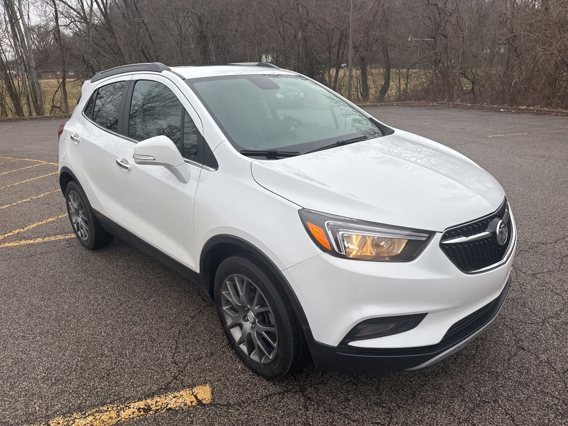 Glockner Ford Southpoint is proud to offer this great-looking 2019 Buick Encore in Summit White. This 2019 Buick Encore has passed our comprehensive inspection and comes with the following features; Encore Sport Touring Package (Rear Sport Spoiler), Preferred Equipment Group 1SH (Front Fog Lamps and Remote Vehicle Starter System), Safety Package (120-Volt Power Outlet, Rear Cross Traffic Alert, and Side Blind Zone Alert), 2-Way Manual Front Passenger Seat Adjuster, 3.53 Final Drive Axle Ratio, 4-Wheel Disc Brakes, 6 Speakers, 6-Speaker Audio System, 6-Way Power Driver Seat Adjuster, ABS brakes, Air Conditioning, Alloy wheels, AM/FM radio: SiriusXM, Apple CarPlay/Android Auto, Brake assist, Bumpers: body-color, Cloth w/Leatherette Seat Trim, Compass, Delay-off headlights, Driver door bin, Driver vanity mirror, Driver's Seat Mounted Armrest, Dual front impact airbags, Dual front side impact airbags, Electronic Stability Control, Emergency communication system: OnStar and Buick connected services capable, Exterior Parking Camera Rear, Front anti-roll bar, Front Bucket Seats, Front Fog Lamps, Front fog lights, Front License Plate Bracket, Front reading lights, Front wheel independent suspension, Fully automatic headlights, Heated door mirrors, Illuminated entry, Inside Rearview Manual Day/Night Mirror w/Tilt, Knee airbag, Occupant sensing airbag, Outside temperature display, Overhead airbag, Panic alarm, Passenger door bin, Passenger vanity mirror, Power door mirrors, Power driver seat, Power steering, Power Tilt-Sliding Moonroof, Power windows, Preferred Equipment Group 1SH, Premium All-Weather Floor Liners (LPO), Radio data system, Radio: Buick Infotainment System AM/FM Stereo, Rear Cross Traffic Alert, Rear seat center armrest, Rear side impact airbag, Rear Sport Spoiler, Rear window defroster, Rear window wiper, Remote keyless entry, Ride & Handling Suspension, Roof rack: rails only, Security system, SiriusXM Radio, Speed control, Speed-sensing steering, Split folding rear seat, Spoiler, Steering wheel mounted audio controls, Tachometer, Telescoping steering wheel, Tilt steering wheel, Traction control, Trip computer, Turn signal indicator mirrors, Variably intermittent wipers, and Wheels: 18" Midnight Silver Aluminum Alloy.