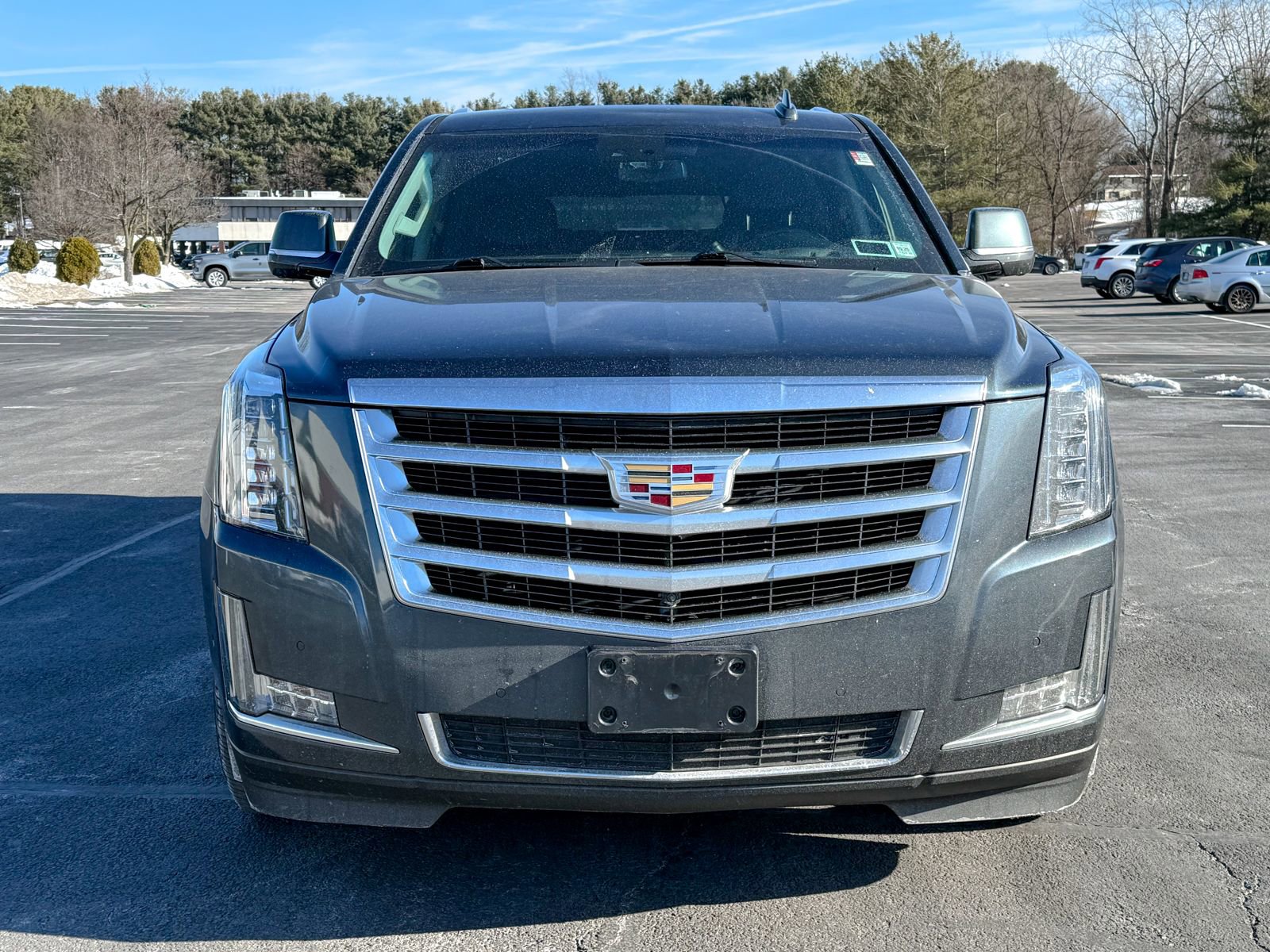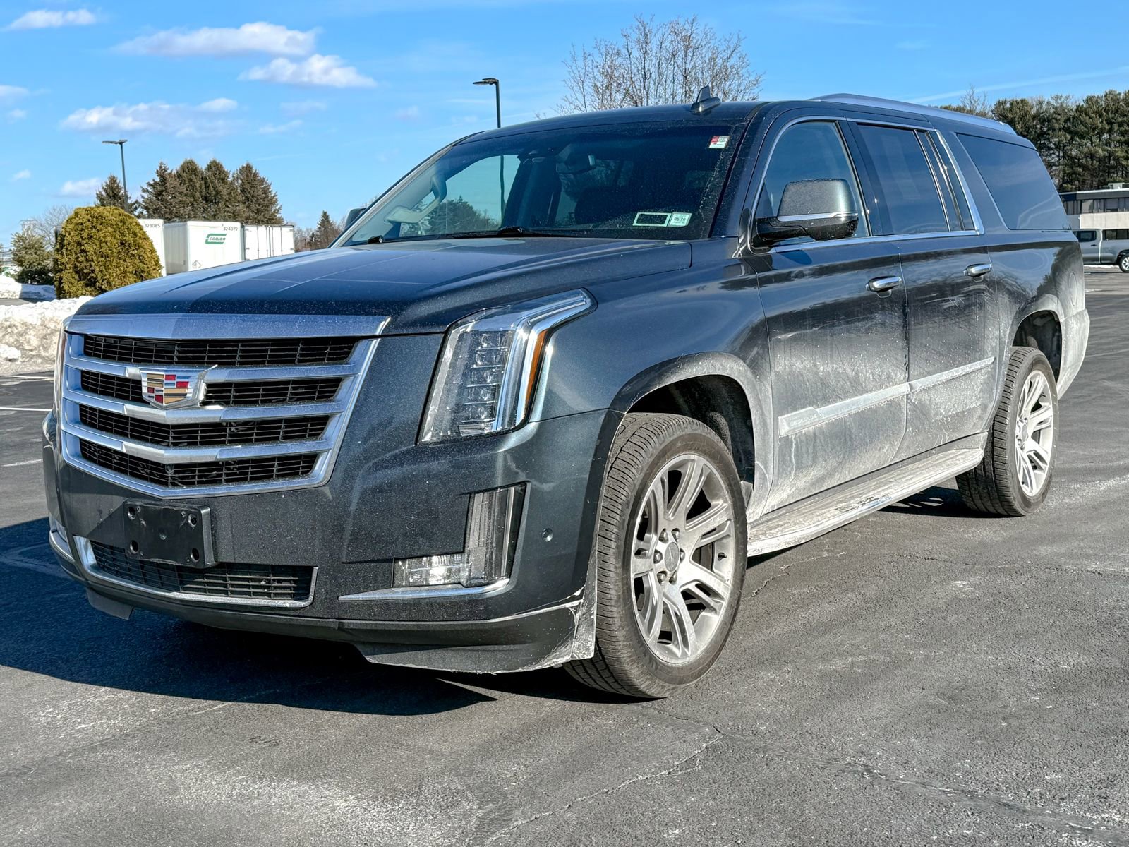 Shadow Metallic 2019 Cadillac Escalade ESV Luxury 4WD 10-Speed Automatic with Overdrive 6.2L V8 4WD, 12-Way Power Front Passenger Seat Adjuster, 16 Speakers, 1st 2nd & 3rd Row All-Weather Floor Mats, 2-Presets Memory For Driver Seat Adjuster, 3rd Row DVD Screen, 3rd row seats: split-bench, 4-Wheel Disc Brakes, ABS brakes, Adaptive suspension, Adjustable pedals, Air Conditioning, All-Weather Cargo Mat, Alloy wheels, AM/FM radio: SiriusXM, Apple CarPlay/Android Auto, Auto High-beam Headlights, Auto tilt-away steering wheel, Auto-dimming door mirrors, Auto-leveling suspension, Automatic temperature control, Black Front License Plate Bracket, Bodyside moldings, Bose Centerpoint 16 Speaker Surround Sound System, Brake assist, Bumpers: body-color, CD player, Compass, Delay-off headlights, Digital Headphones, Driver Awareness Package, Driver door bin, Driver vanity mirror, Dual front impact airbags, Dual front side impact airbags, DVD-Audio, Electronic Stability Control, Emergency communication system: OnStar Protection, Exterior Parking Camera Rear, Forward Collision Alert, Front anti-roll bar, Front Bucket Seats, Front Center Armrest w/Storage, Front dual zone A/C, Front reading lights, Front wheel independent suspension, Fully automatic headlights, Garage door transmitter, HD Radio, Heads-Up Display, Heated & Cooled Driver & Front Passenger Seats, Heated door mirrors, Heated front seats, Heated rear seats, Heated steering wheel, Illuminated entry, Inclination Sensor, IntelliBeam Automatic High Beam On/Off, Interior Protection Package, Lane Change Alert w/Side Blind Zone Alert, Lane Keep Assist w/Lane Departure Warning, Leather Seating Surfaces, Leather Shift Knob, Leather steering wheel, Low Speed Forward Automatic Braking, Low tire pressure warning, Magnetic Ride Control Suspension, Memory seat, Navigation System, Occupant sensing airbag, Outside temperature display, Overhead airbag, Overhead console, Panic alarm, Passenger door bin, Passenger vanity mirror, Pedal memory, Power Configurable Second Row Bucket Seats, Power door mirrors, Power driver seat, Power Liftgate, Power moonroof, Power passenger seat, Power steering, Power Tilt-Sliding Sunroof w/Express-Open/Close.