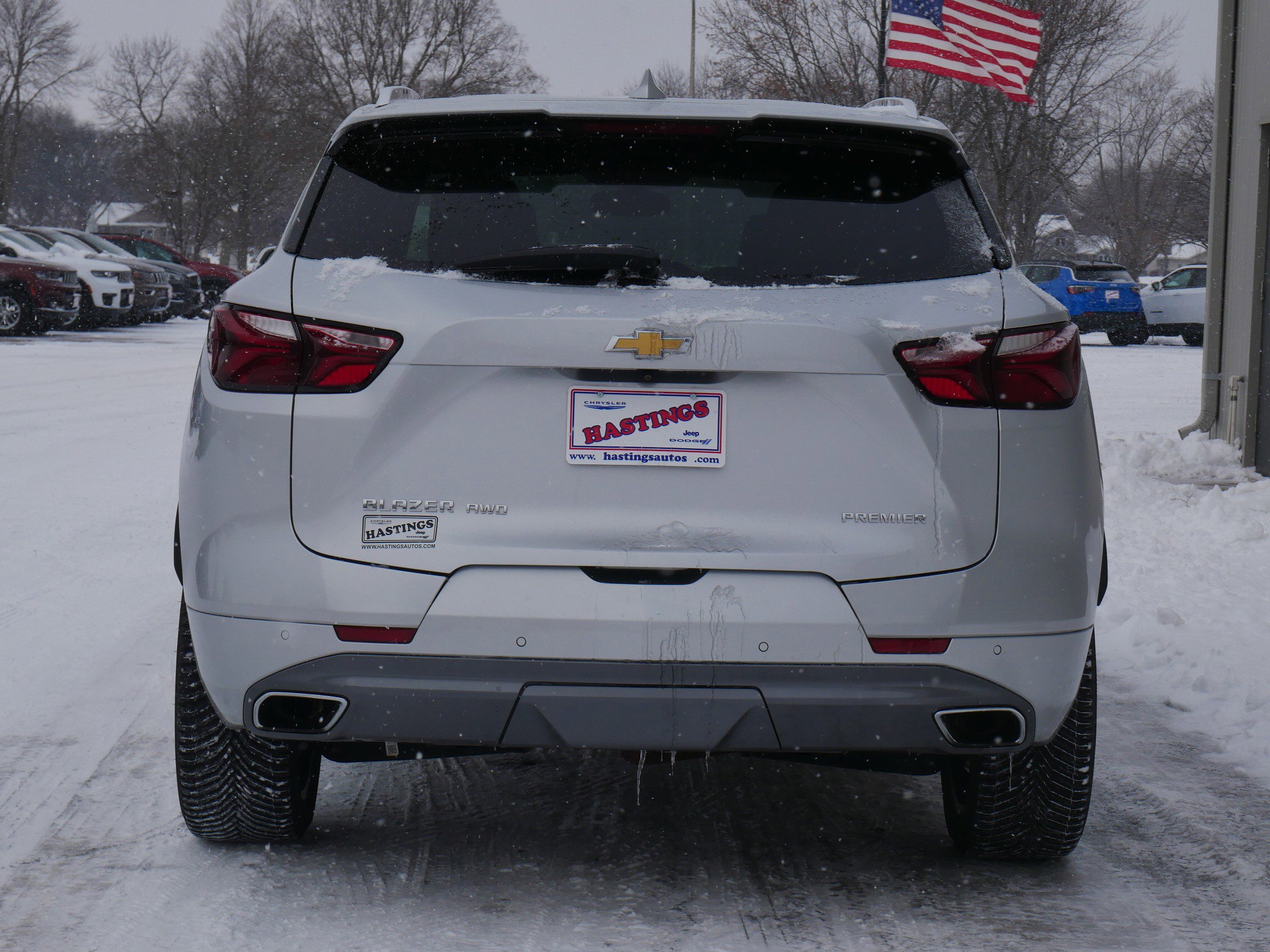 The 2019 Chevrolet Blazer Premier (VIN: 3GNKBKRS6KS688365) is a stylish, upscale midsize crossover finished in elegant Silver Ice Metallic with a sophisticated Jet Black leather-trimmed interior. This top-tier Premier trim combines sporty handling, premium amenities, and confident all-weather performance, making it an outstanding option for Minnesota drivers who want a blend of luxury, technology, and capability for daily drives, highway cruising, or weekend adventures. This example has low-to-moderate mileage (~40,201 miles) and benefits from Chevrolet's solid build quality, ready to provide reliable, enjoyable service through Minnesota's seasons. Currently available through Hastings Chrysler Jeep Dodge RAM in Hastings, MN---just a short, easy drive from Minneapolis! Whether you're navigating winter commutes, handling daily errands, or planning longer trips across the state, this Blazer Premier offers premium comfort, advanced features, and capable AWD performance in a stylish midsize package. Contact Hastings Chrysler Jeep Dodge RAM today to schedule a test drive---this sought-after Premier model is in high demand!