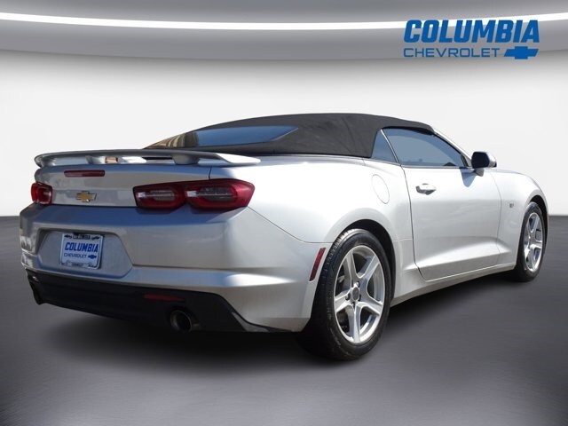 Columbia Chevrolet is very proud to offer this good-looking 2019 Chevrolet Camaro 1LT in Silver Ice Metallic. Beautifully equipped with Preferred Equipment Group 1LT, 18" Silver-Painted Aluminum Wheels, 2.77 Rear Axle Ratio, 4-Wheel Disc Brakes, 6 Speakers, 6-Speaker Audio System Feature, 6-Way Power Front Passenger Seat Adjuster, 8-Way Power Driver Seat Adjuster, ABS brakes, Air Conditioning, Alloy wheels, AM/FM radio: SiriusXM, Apple CarPlay/Android Auto, Automatic temperature control, Bluetooth For Phone, Brake assist, Bumpers: body-color, Cloth Seat Trim, Compass, Convertible roof lining, Cruise Control, Delay-off headlights, Driver door bin, Driver vanity mirror, Dual front impact airbags, Dual front side impact airbags, Electronic Stability Control, Exterior Parking Camera Rear, Four wheel independent suspension, Front anti-roll bar, Front Bucket Seats, Front Center Armrest, Front reading lights, Front Sport Bucket Seats, Fully automatic headlights, Glass rear window, Illuminated entry, Knee airbag, Leather Shift Knob, Low tire pressure warning, Occupant sensing airbag, Paddle-Shift Manual Controls, Panic alarm, Passenger door bin, Passenger vanity mirror, Power convertible roof, Power door mirrors, Power driver seat, Power passenger seat, Power steering, Power windows, Premium audio system: Chevrolet Infotainment System, Radio data system, Radio: Chevrolet Infotainment 3 System, Rear anti-roll bar, Rear window defroster, Remote keyless entry, Remote Vehicle Starter System, Security system, SiriusXM Radio, Speed-sensing steering, Spoiler, Steering wheel mounted audio controls, Tachometer, Telescoping steering wheel, Tilt steering wheel, Tire Inflation Kit, Traction control, Trip computer, Variably intermittent wipers, and Voltmeter! Ask your neighbors, they bought from us!