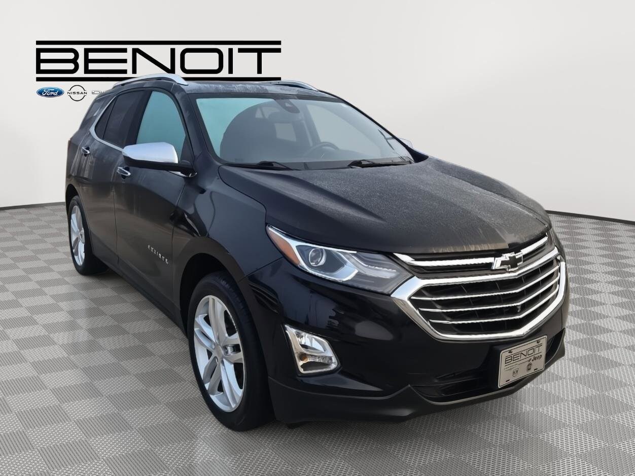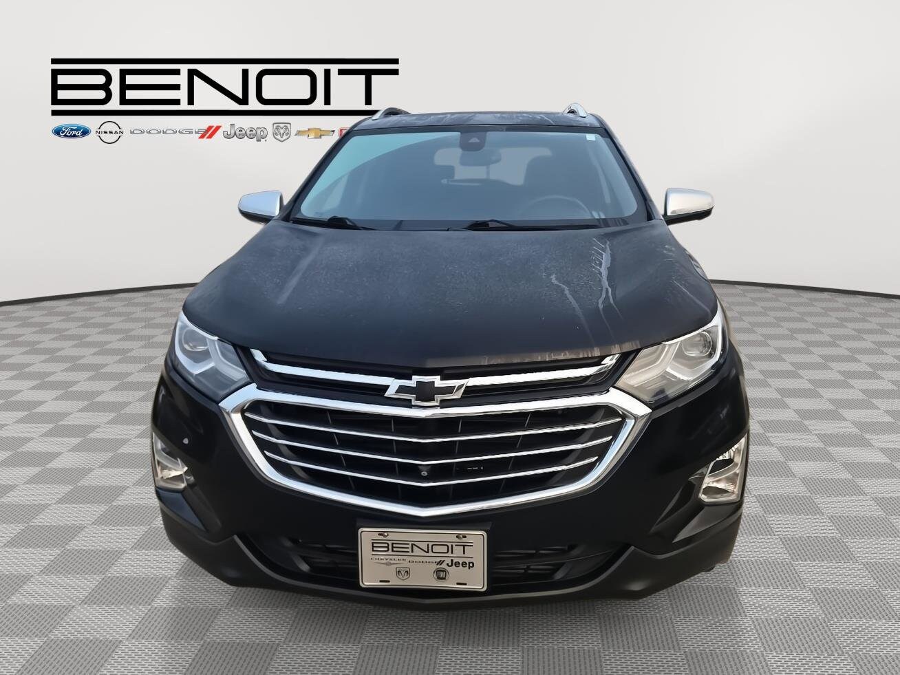 Rev up your engines, folks, because we've got the used cars of your dreams at Benoit Motors! Our lot is jam-packed with the coolest rides around, from sleek sports cars to rugged SUVs. But that's not all - we've got financing available for everyone, so you can hit the road in style without breaking the bank. And all of our used cars go through a rigorous 120-point inspection, so you know you're getting a reliable ride that's built to last. At Benoit Motors, we're the go-to dealer for all your used car needs. Our friendly and knowledgeable staff are here to help you find the perfect car for your lifestyle and budget. So come on down and test drive your dream ride today! But be warned - once you get behind the wheel of one of our used cars, you won't want to leave without it. So what are you waiting for? Come see us at Benoit Motors and let the good times roll! 2019 Chevrolet Equinox Premier Mosaic Black Metallic with Jet Black Interior. Confidence and Convenience II Package ($2,145 value) Driver Convenience II Package 8-Way Power Front Passenger Seat Adjuster Heated Rear Seats Ventilated Driver Seat Ventilated Front Passenger Seat Heated Steering Wheel Driver Confidence II Package Safety Alert Seat Adaptive Cruise Control - Camera IntelliBeam Auto High Beam Headlamp Control Following Distance Indicator Forward Collision Alert Lane Keep Assist with Lane Departure Warning Low Speed Forward Automatic Braking Front Pedestrian Braking HD Surround Vision Preferred Equipment Group 2LZ 17" Steel Spare Wheel 4,850 lbs (2,200 Kgs) GVWR 3.17 Final Drive Axle Ratio Body-Color Trailer Hitch Close-Out Cover 4-Wheel Antilock 4-Wheel Disc Brakes 2.0L Turbo 4-Cylinder SIDI VVT Engine Electronic 9-Speed Automatic Transmission with Overdrive Dual Stainless-Steel Exhaust with Bright Tips T125/70R17 BW Compact Spare Tire P235/50R19 All-Season Blackwall Tires 19" Bright Machined Wheels Trailering Equipment Factory Installed Trailer Hitch Floor Liner Package ($295 value) Integrated Cargo Liner All-Weather Floor Liners Safety and Security Forward collision mitigation - Forward thinking. You look away for just a second and suddenly the vehicle in front of you has stopped. That's when the forward collision mitigation system comes to life. When it senses an impending impact, it will activate a combination of features to help prevent or reduce the severity of an accident. Forward collision mitigation is always looking ahead. Pedestrian impact prevention - An extra step toward safety. Pedestrians don't always stop, look, and listen, but with Pedestrian Impact Prevention, your vehicle is equipped to better see them and avoid them. This system constantly monitors the road ahead to identify and track pedestrians. It projects that image to an interior display screen, AND should an impact become likely, Pedestrian impact prevention takes steps to avoid a collision. Rear camera - Watching your back! The rear camera helps you see obstacles and hazards you otherwise couldn't by showing enhanced images of what is behind you. The rear camera is an extra set of eyes that's both convenient and safe. Smart device mirroring - Smartphone, meet smart car. You can control your device through your vehicle's infotainment system. Smart device mirroring brings together safety and convenience by making it easier to find what you're looking for while keeping your eyes on the road. Mobile hotspot - WiFi on the fly. Connect your devices to the Internet through your vehicle's private mobile hotspot and take the internet wherever your journey takes you, without eating up your data allowance. Find the hotspot with mobile hotspot.