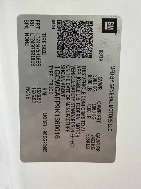 VIN: 1GCWGAFP9K1369016