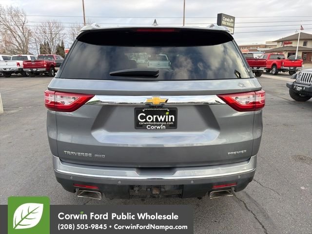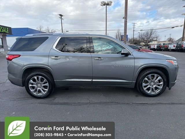 The right choice for any adventure, our Accident Free, One Owner 2019 Chevrolet Traverse Premier AWD offered in amazing Satin Steel Metallic! Powered by a 3.6 Liter V6 that delivers 310hp connected to a 9 Speed Automatic transmission for easy passing. This All Wheel Drive SUV also scores nearly 25mpg on the highway with easy maneuverability in town and power for towing that toy on the weekends. Our Traverse has a premium look, too, with LED lighting, fog lamps, a hands-free liftgate, alloy wheels, a sunroof, dual exhaust outlets, and heated power mirrors with built-in turn signals. Get behind the wheel of our Premier cabin that is engineered for full-size comfort with leather heated/ventilated power front seats, heated second-row captain's chairs, a versatile third row, a heated leather power steering wheel, tri-zone automatic climate control, and upscale technology to help you master every mile. An 8-inch touchscreen is the starting point and supports full-color navigation, Apple CarPlay, Android Auto, Bluetooth, WiFi compatibility, and a 10-speaker Bose sound system. Chevrolet helps you to avoid and manage challenging driving situations with smart safety measures like a surround-view system, lane-change assistance, blind-spot monitoring, a digital rearview camera, a rear-seat reminder, and more. Our Traverse Premier will more than treat you right! Save this Page and Call for Availability. We Know You Will Enjoy Your Test Drive Towards Ownership! Corwin Ford Nampa! Friendly service and aggressive pricing is why we are your new and pre-owned vehicle dealer serving, Nampa, Boise, Meridian, Caldwell, Kuna, Eagle, Emmett, Idaho City, Wilder, New Plymouth, Star, Middleton, Weiser, Payette, Horseshoe Bend, Mountain Home, Idaho, and surrounding states.