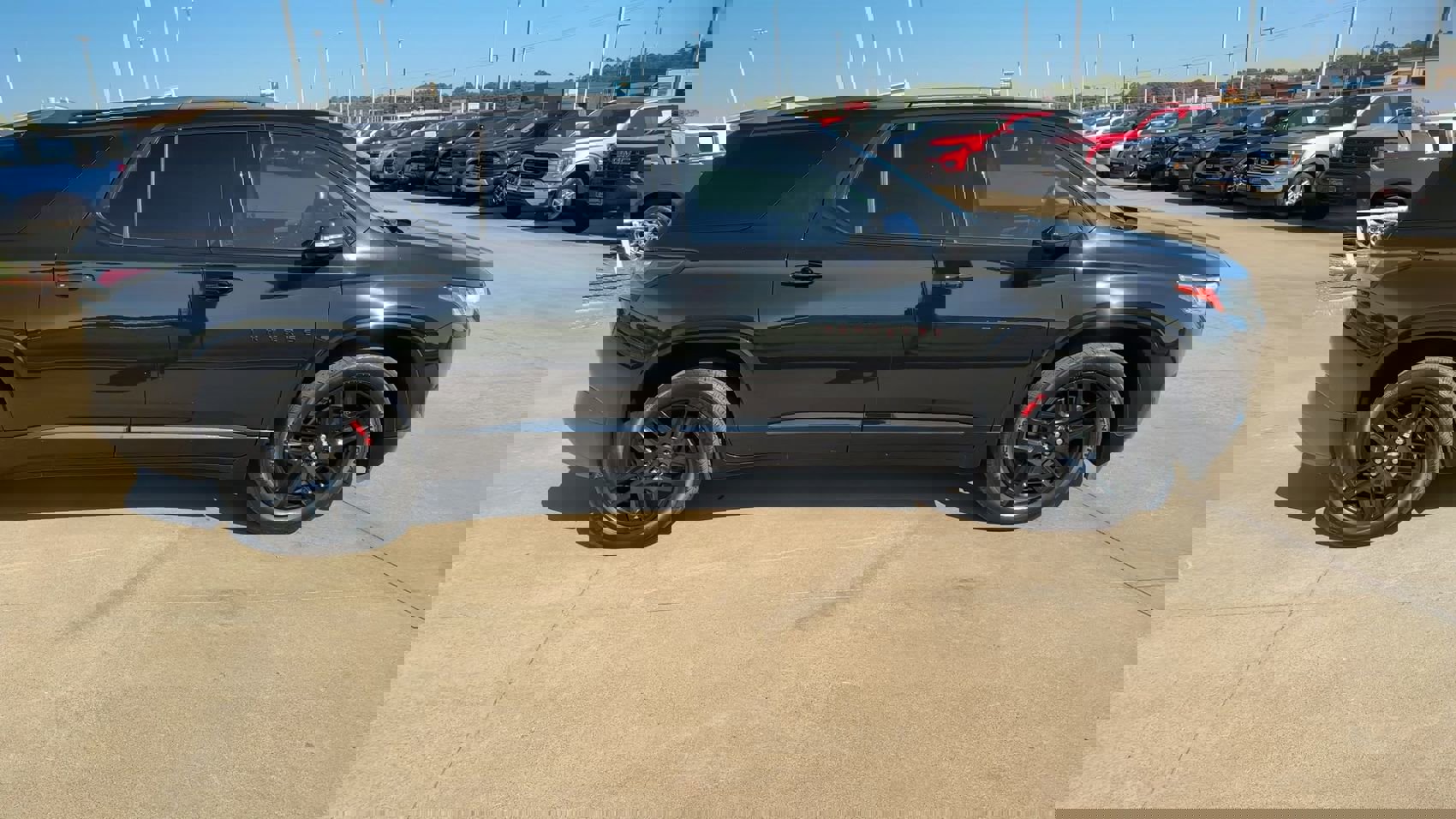 Clean CARFAX. Traverse Premier, 4D Sport Utility, 3.6L V6 SIDI VVT, 9-Speed Automatic, FWD, Mosaic Black Metallic, Jet Black Leather, 1st & 2nd Row All-Weather Floor Mats, 3rd Row All-Weather Floor Mats, All-Weather Cargo Mat (LPO), Black Door Handles, Bose Premium 10-Speaker Audio System Feature, Driver Confidence II Package, Dual SkyScape 2-Panel Power Sunroof, Following Distance Indicator, Forward Collision Alert, Front License Plate Bracket Mounting Package, Front Pedestrian Braking, Heavy-Duty Cooling System, IntelliBeam Auto High Beam Control Headlamps, Interior Protection Package (LPO), Lane Keep Assist w/Lane Departure Warning, Low Speed Forward Automatic Braking, Navigation System, Ornamentation, Power Liftgate, Preferred Equipment Group 1LZ, Premium audio system: Chevrolet MyLink, Radio: Chevrolet Infotainment AM/FM Stereo w/Navigation, Redline Edition, SiriusXM Radio, Trailering Equipment, Wheels: 20" Gloss Black Painted Alum w/Red Stripes. This 2019 Chevrolet Traverse Premier in Mosaic Black Metallic comes with the following features: 3.6L V6 SIDI VVT 9-Speed Automatic FWD Driver Confidence II Package (Following Distance Indicator, Forward Collision Alert, Front Pedestrian Braking, IntelliBeam Auto High Beam Control Headlamps, Lane Keep Assist w/Lane Departure Warning, and Low Speed Forward Automatic Braking), Front License Plate Bracket Mounting Package, Interior Protection Package (LPO) (1st & 2nd Row All-Weather Floor Mats, 3rd Row All-Weather Floor Mats, and All-Weather Cargo Mat (LPO)), Preferred Equipment Group 1LZ, Redline Edition (Black Door Handles, Dual SkyScape 2-Panel Power Sunroof, Ornamentation, and Wheels: 20" Gloss Black Painted Alum w/Red Stripes), Trailering Equipment (Heavy-Duty Cooling System), Traverse Premier, 4D Sport Utility, 3.6L V6 SIDI VVT, 9-Speed Automatic, FWD, Mosaic Black Metallic, Jet Black Leather, Bose Premium 10-Speaker Audio System Feature, Navigation System, Power Liftgate, Premium audio system: Chevrolet MyLink, Radio: Chevrolet Infotainment AM/FM Stereo w/Navigation, SiriusXM Radio, 10 Speakers.