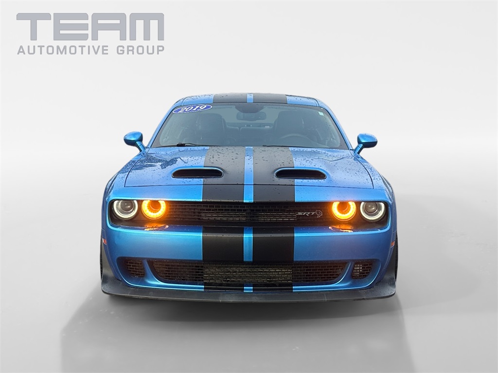 B5 Blue Pearlcoat 2019 Dodge Challenger SRT Hellcat Redeye Widebody. Awards: 2019 KBB.com 10 Coolest Cars Under $30,000, 2019 KBB.com Brand Image Awards. Check out all these great options Alcantara Appearance Package (Alcantara/Laguna Seats w/Logo, All Seats w/Leather Trim, Suede Door Trim Panel w/Map Pocket, Ventilated Front Seats, Wildwheel Alcantara Steering Wheel), Driver Convenience Group (Blind Spot & Cross Path Detection, High-Intensity Discharge Headlamps, and Power Multi-Function Foldaway Mirrors), harman/kardon Audio Group w/Subwoofer (18 Speakers Premium Audio System, harman/kardon GreenEdge Amp, Surround Sound, Trunk Mounted Subwoofer), Plus Package, Quick Order Package 27Q SRT Hellcat Redeye Widebody.